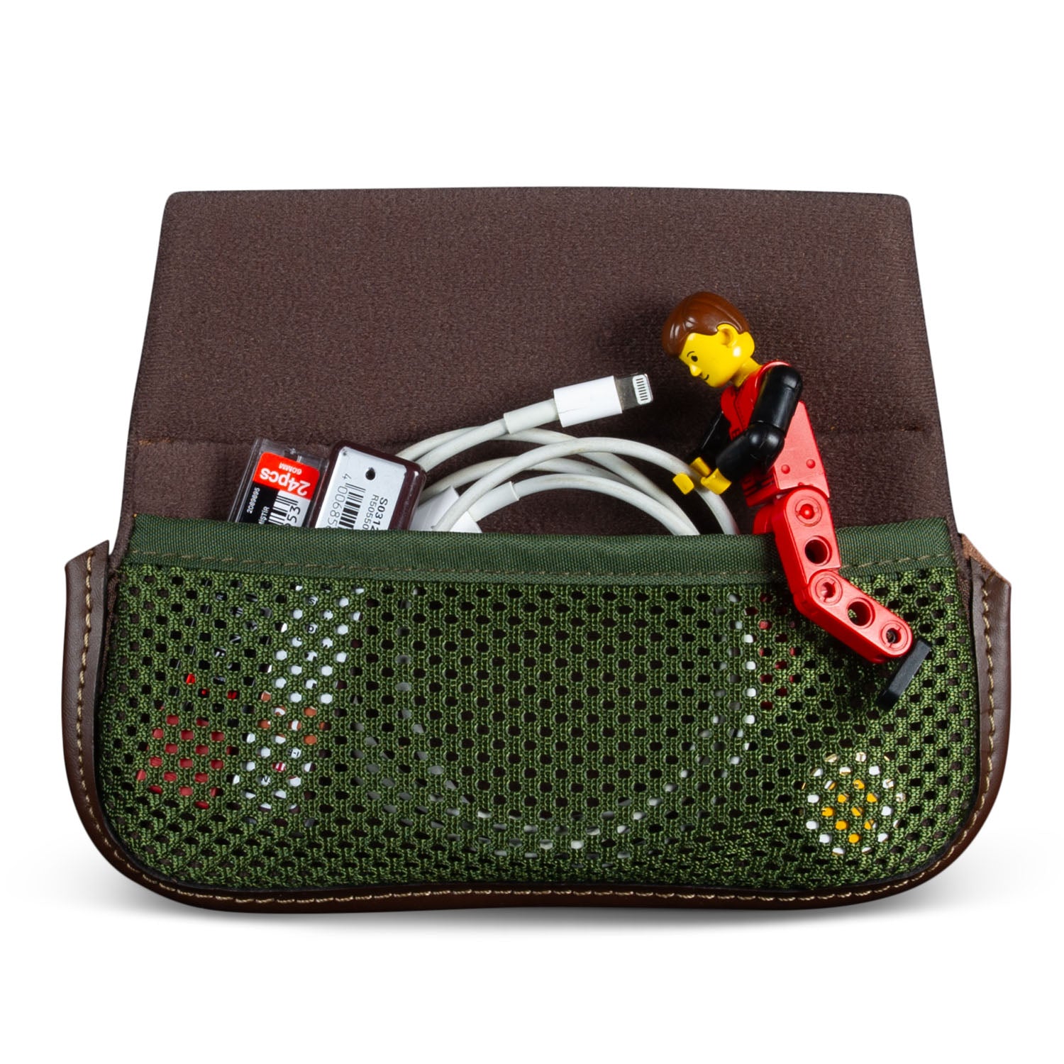 A stylish pouch with a wide doctors-bag style opening, perfectly crafted to fit inside your everyday bag. Inside you can find 5mm foam to protect your small to medium sized cameras and lenses and two internal mesh pockets for similar items such as memory cards, cables etc.