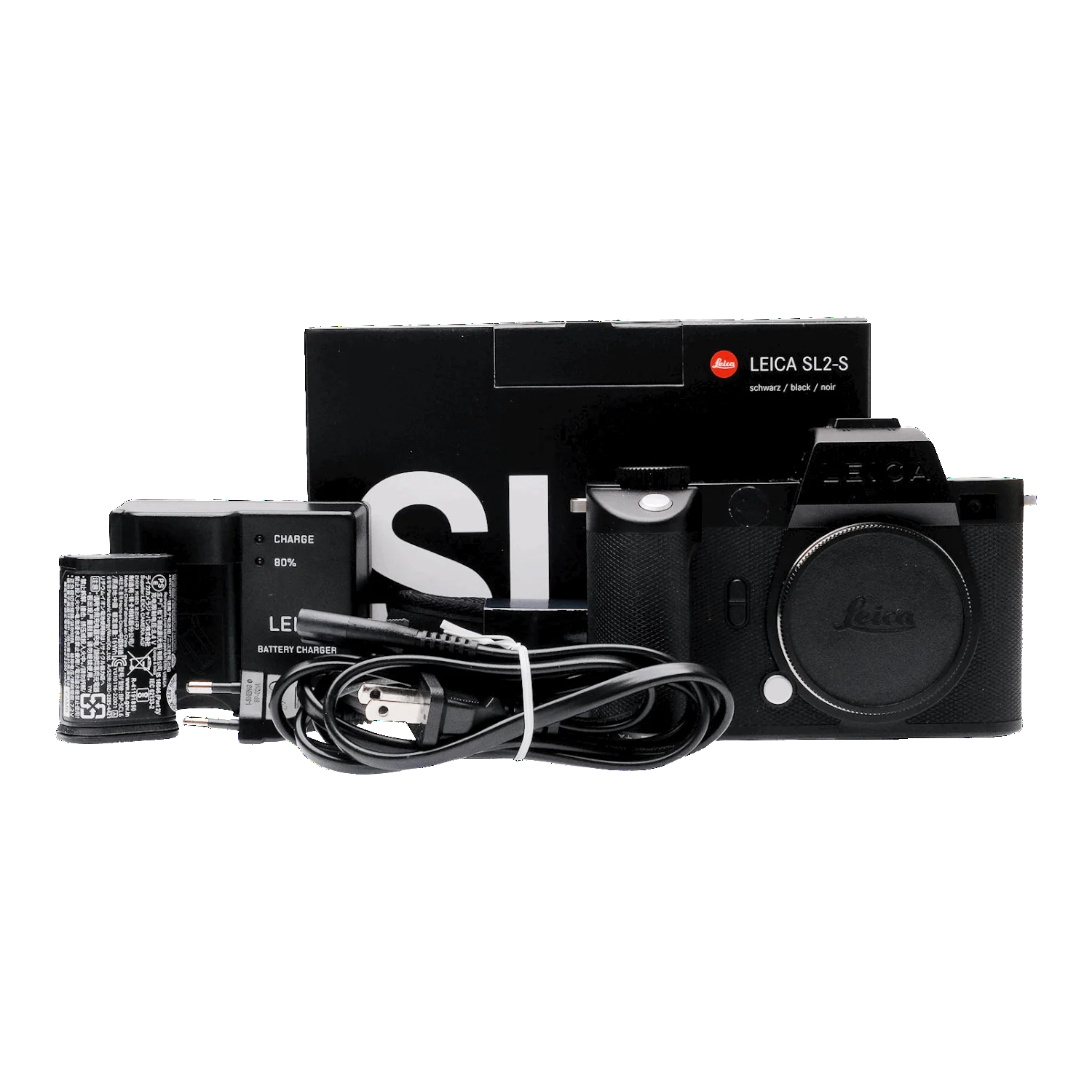 This Leica SL2-S, #5643701, is in great condition with minor handling wear. I rate it cosmetically a (9+). The camera is in proper working order; the viewfinder is clear, the sensor is unmarked, and the memory card slots read & write. This camera includes a Leica battery, battery charger, charging cables, neck strap, body cap, and the original box. Please refer to the photos for details.
