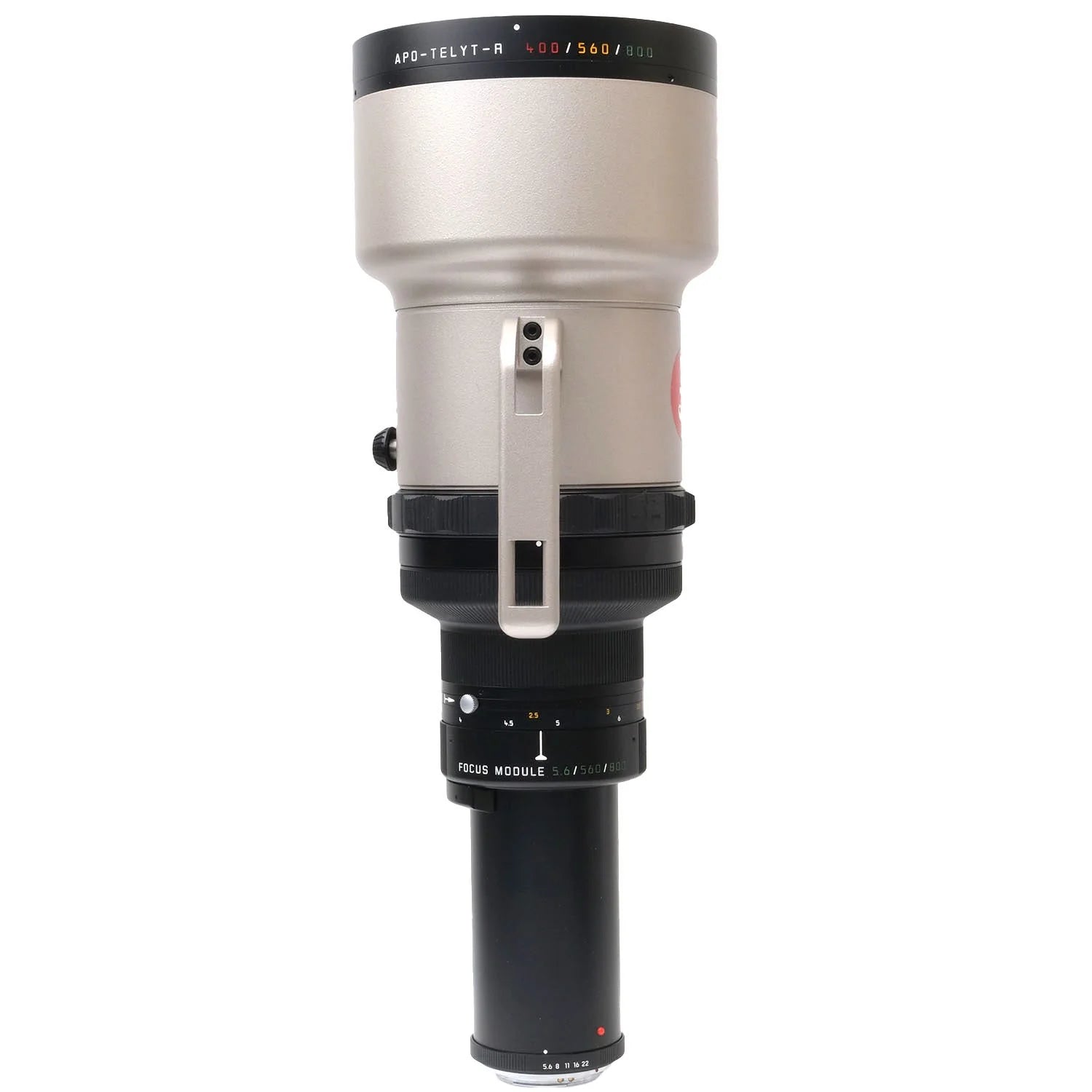 This Leica Modular set comes with both lens heads and all three focusing modules. Included are 280/400/560mm lens head, boxed (3797829), 400/560/800 lens head (3757217), 1x focus module, boxed (3735173), 1.4x focus module (3735333, 2x focus module (3754897). Also included are the fitted hard carry case for the 400mm lens head and focus module, leather cases for all three focus modules. All of the glass is clean and clear with no haze, marks or fungus. The focus on all modules is smooth and all of the apertures work well. Cosmetically, this only shows faint handling wear. We have it rated at (9+). This is a super clean and well sorted Modular set, ready for a new home.