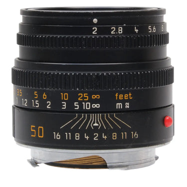 This Leica 50mm f2 Summicron-M Lens (Black, V5), #4156700, is in good condition with some handling wear. I rate it cosmetically an (8). The focus and aperture rings are smooth, the aperture functions properly, and the glass is clean and clear with no haze, marks, or fungus. There are a few faint specks of dust inside, but they do not affect image quality. This lens includes front & rear caps. Please refer to the photos for details.