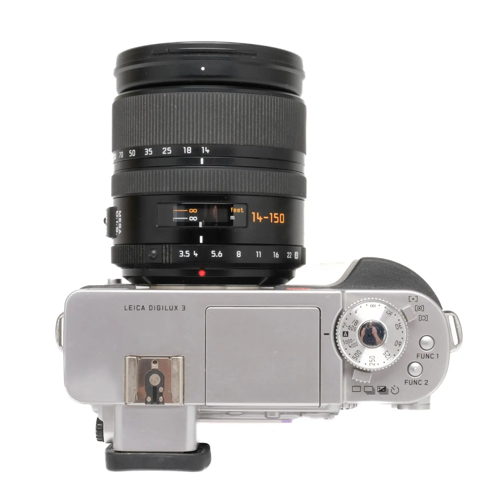 This Leica Digilux 3 is in good cosmetic condition with minor handling and edge wear found throughout; please see photos for visual reference. Cosmetically, this camera has been rated at an (8+) condition. This camera is in proper working order; the viewfinder is clean, the sensor is unmarked, and the memory card slot reads and writes correctly. The 14–150mm zoom lens functions properly; autofocus, zoom, and aperture operate as intended, and the glass is clean and clear with no signs of fungus, haze, or marks present. This camera includes the 14–150mm zoom lens, battery, charger, body cap and front/rear caps.