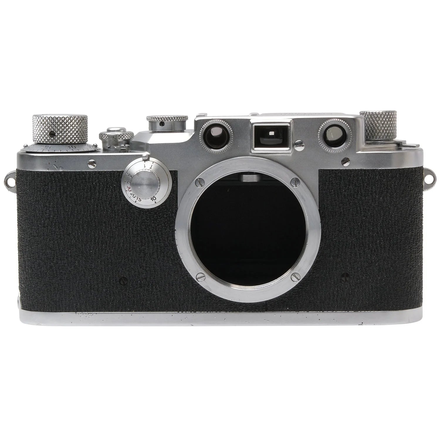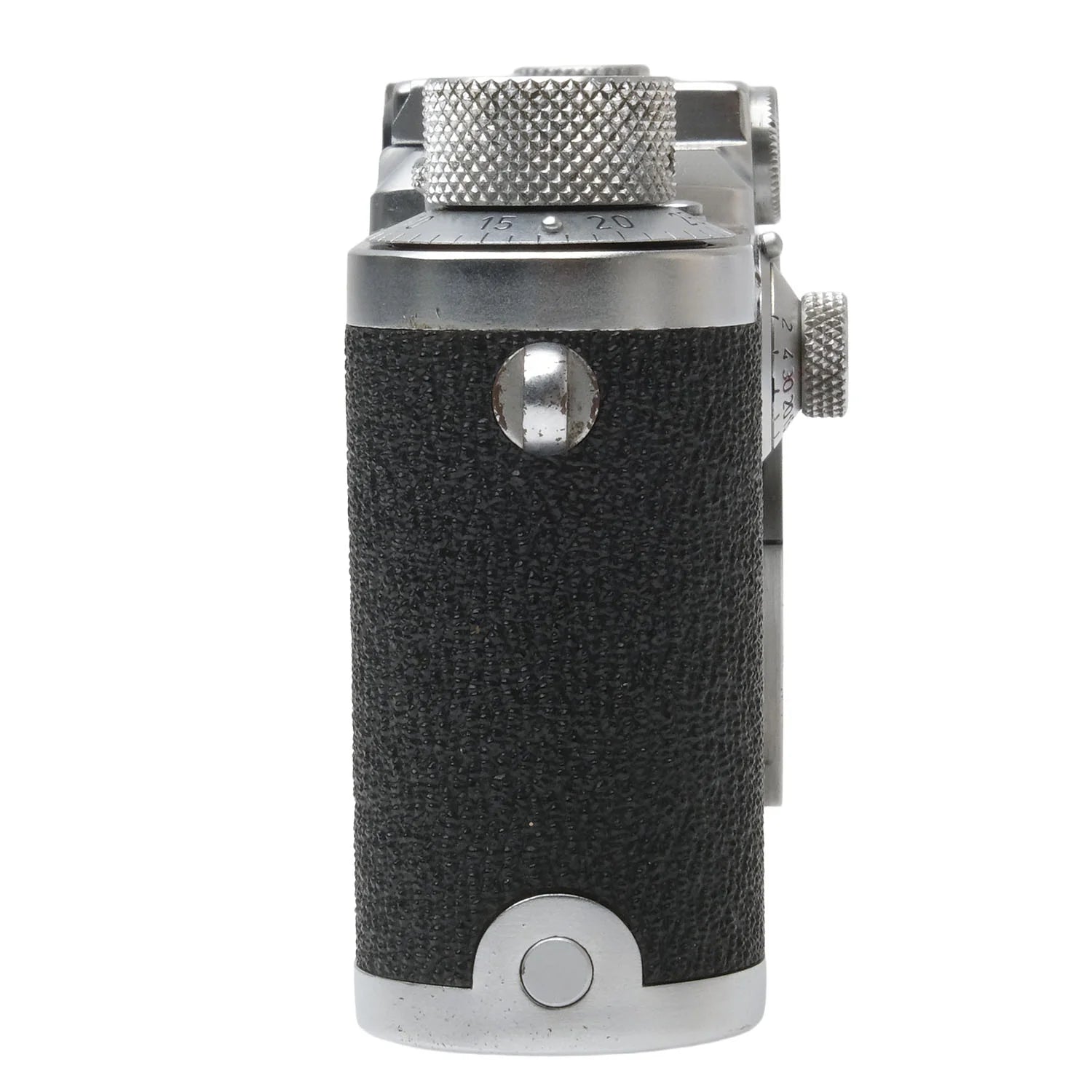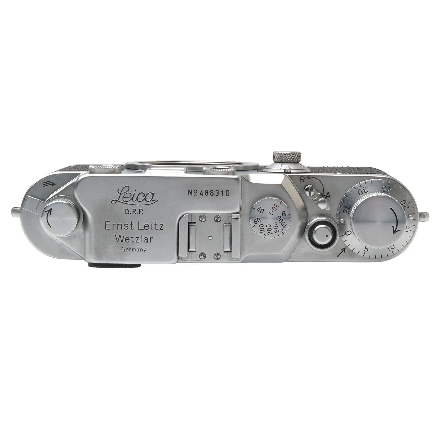 This Leica IIIc #488310 is in very nice condition with only minor edge wear and some faint chrome blistering on the base plate, which is typical of this vintage. I rate it cosmetically at (9) condition. The camera was just returned to us from DAG where a full overhaul was performed. The advance is smooth and the finder is clean and clear, bright and accurate. The shutter curtains are not dry and the speeds are accurate at all settings. A nice later model IIIc, ready to enjoy!