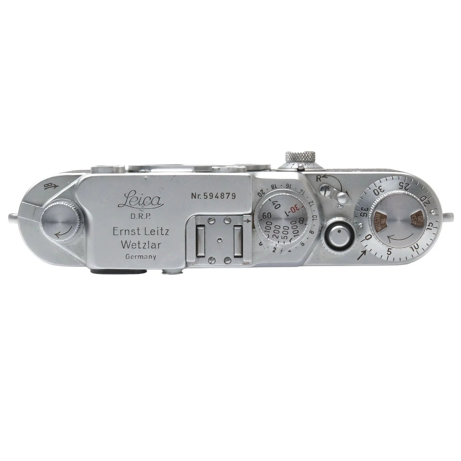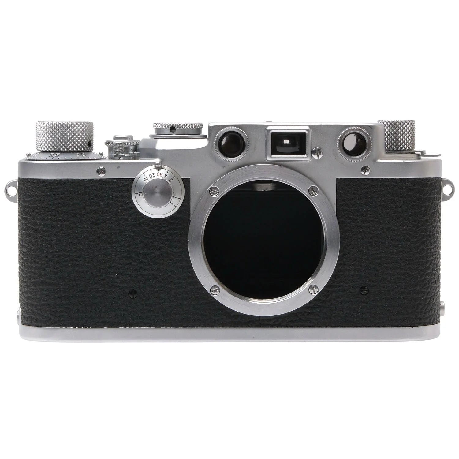 This Leica IIIf (Silver, Black Dial), #594879, is in good condition with some handling wear. I rate it cosmetically an (8+). The camera is in proper working order; film advances properly, the viewfinder is clear, the shutter is accurate at all speeds, and the rangefinder is bright & accurate. This camera includes a body cap. It was completely overhauled by DAG in 2025. Please refer to the photos for details.