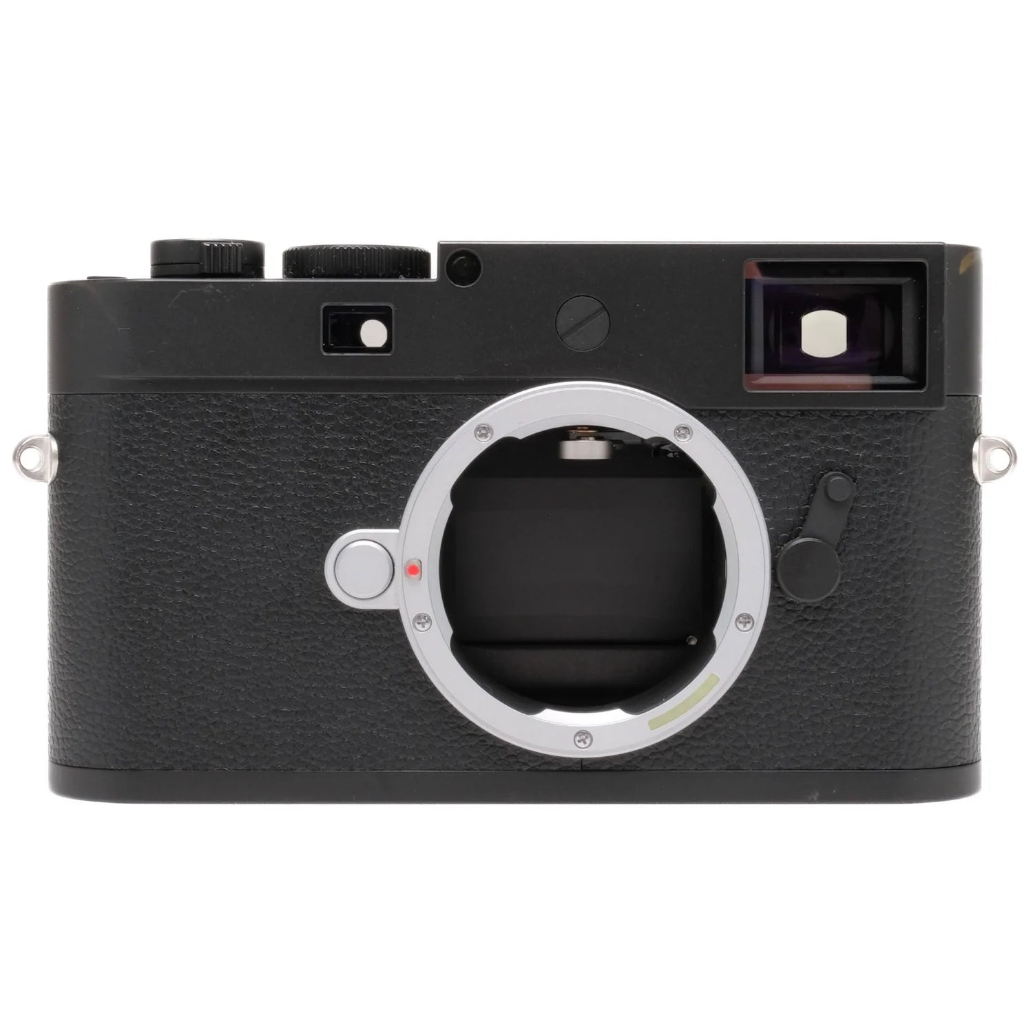 This Leica M11-D body is in great cosmetic condition with minor handling wear found throughout; please see photos for visual reference. Cosmetically, this camera has been rated at a (9) condition. This camera is in proper working order; the finder is bright and accurate, the sensor is clean and unmarked and the memory card slot reads and writes. All controls and dials function properly. This camera includes the box, battery, charging cable, body cap and thumb grip. Please note, there is minor brassing near the left and right lugs (visible in photos).