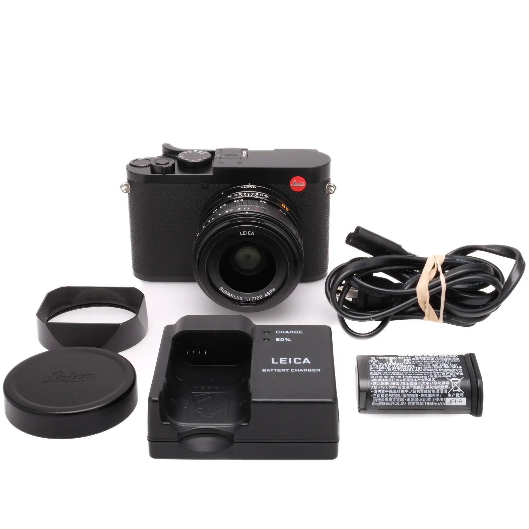 This Leica Q2 is in excellent cosmetic condition with faint handling wear found throughout; please see photos for visual reference. Cosmetically, this camera has been rated at a (9+) condition. This camera is in proper working order; the lens is clean, autofocus is accurate and all functions operate as intended. This camera includes the hood, hood cap, battery, charger and thumb grip. Please note, this does not include the lens ring.