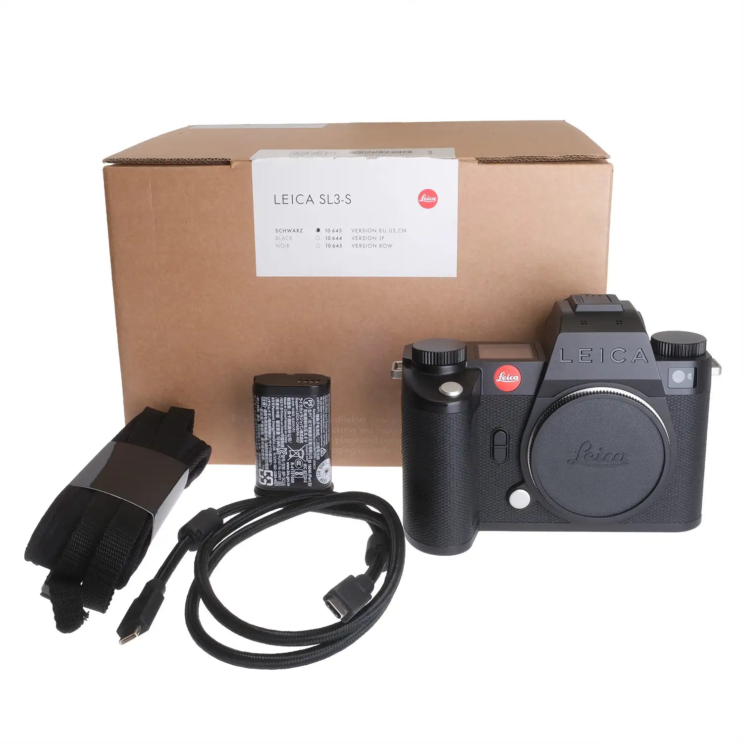 This Leica SL3-S Camera Body #5993195, is in excellent cosmetic condition with very slight signs of handling wear found throughout, please see photos for visual reference. Cosmetically, this camera has been rated at a (9+) condition. This camera is in proper working order; the EVF is bright and accurate, the sensor is unmarked, and the memory card slot reads and writes. This camera comes boxed with a neck strap, a battery, and a USB-C cable. This camera is ready for use!