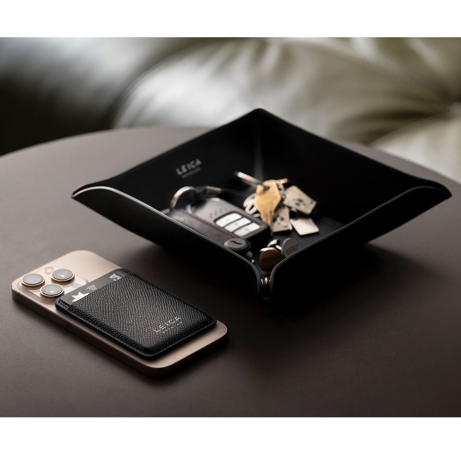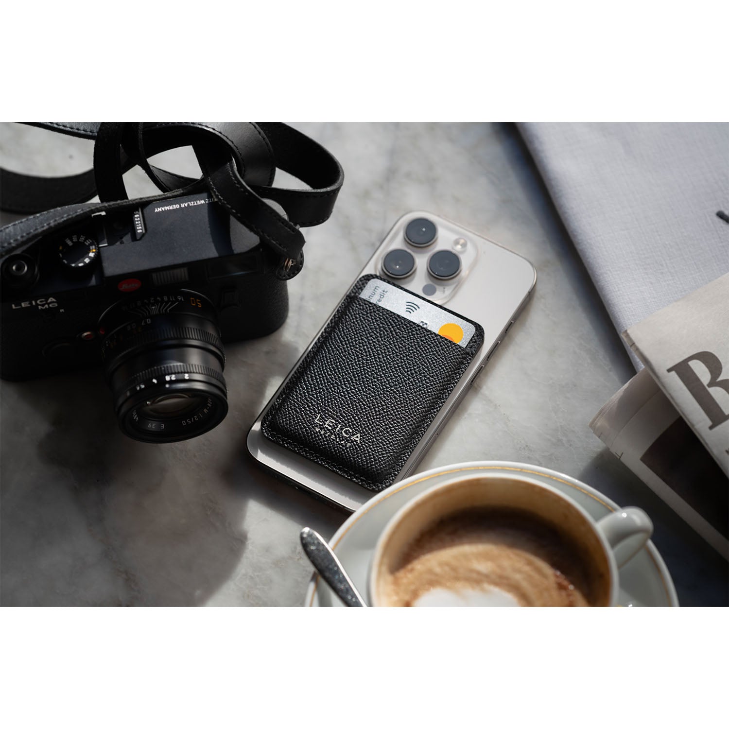 The Leica Cardholder for MagSafe is a timeless and stylish companion. It allows you to keep your most important cards close at hand – conveniently attached to your mobile phone.