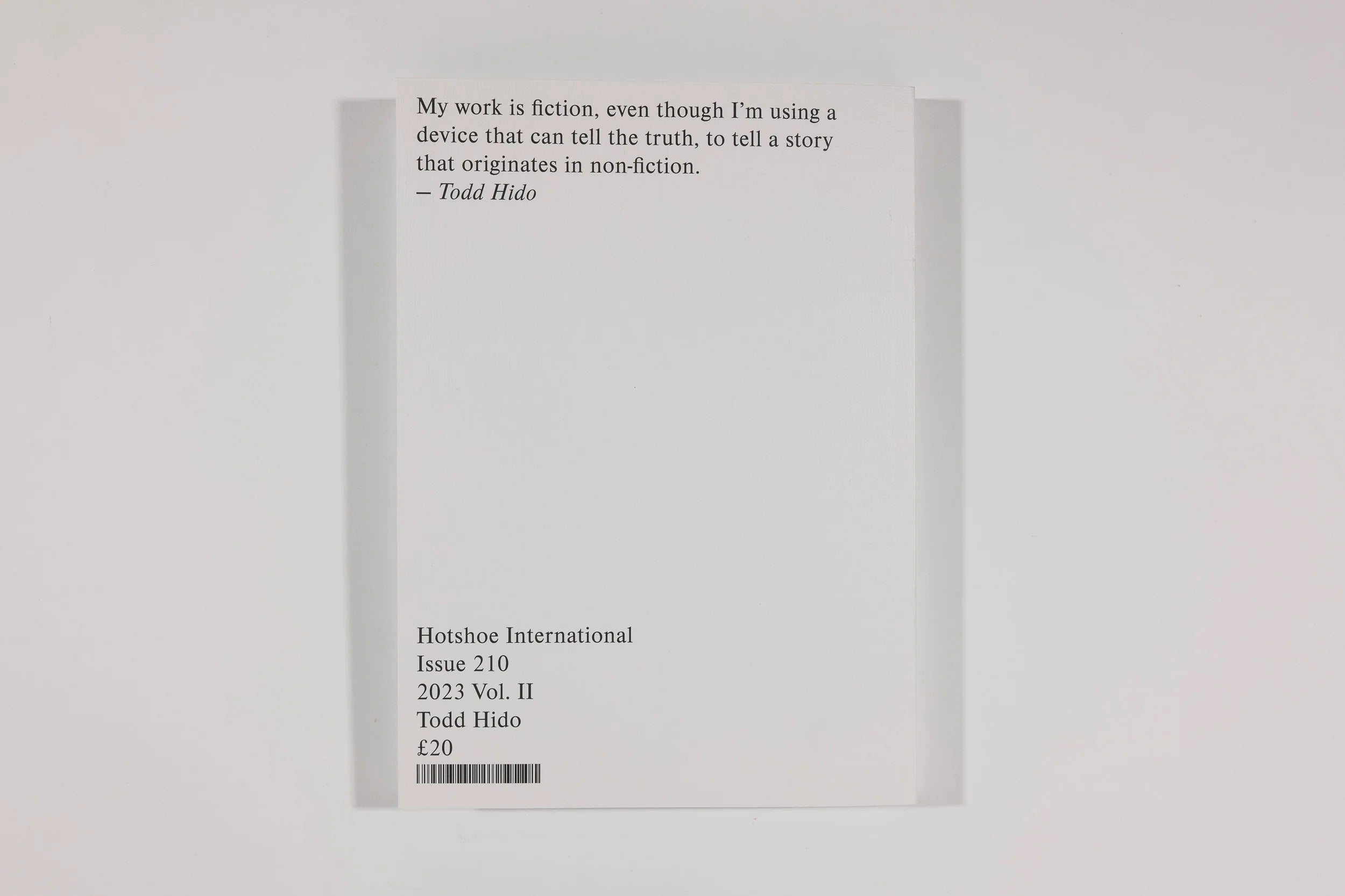 Hotshoe Issue 210 is dedicated to the work of Todd Hido, well known for his atmospheric nighttime photographs of suburban America that tap into our collective memory, and communicate human experience.