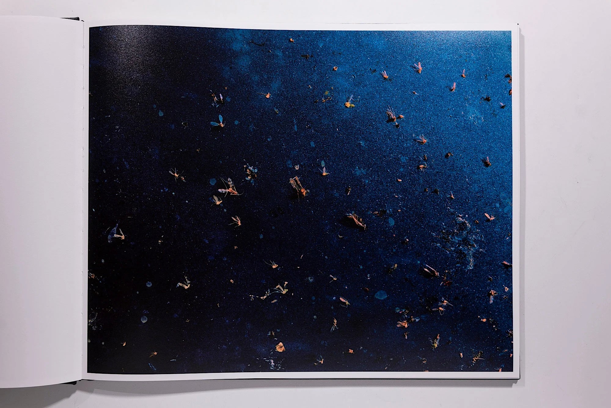 Items both mundane and peculiar –– empty packs of Carlton cigarettes, the shattered frame of a digital Van Gogh, a Ouija board planchette –– trace the outlines of lives lived but not seen. Scum, frost, and dead insects, appearing like beautiful color field abstractions, at times prevent us from seeing inside, and then the sudden presence of a disembodied hand makes us wonder if we should be looking at all.