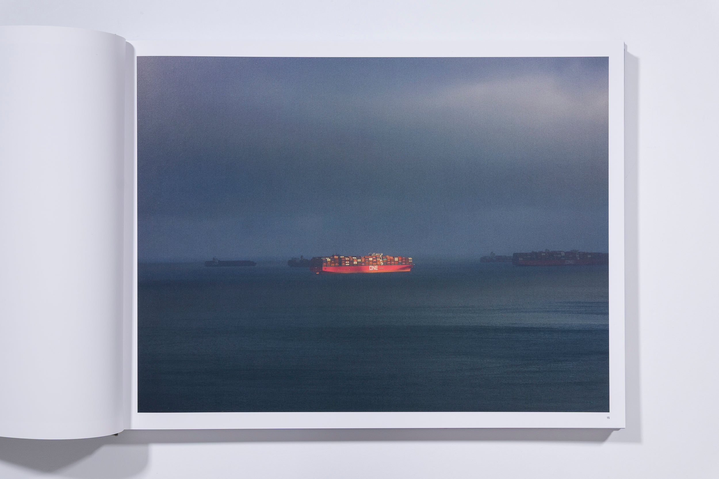Richard Misrach: Cargo presents the acclaimed photographer’s sublime meditation on the often-unseen patterns of global trade and commerce. In 2021, on the heels of the COVID-19 pandemic, which, at its height, seemed to nearly halt the networks of international trade, Misrach began taking thousands of photographs of cargo ships as they moved to and from the Port of Oakland, California. In these monumental seascapes, cargo ships appear frozen in time—diminutive but stalwart—within an expansive, richly colored confluence of sea, sky, and atmosphere. Eerie, sparse, and undeniably beautiful, Misrach’s images abstractly trace multiple histories: the recent collapse and slow recovery of these seafaring trade routes, the confrontation of the human and natural environment in an era of climate disaster, and a rich lineage of maritime art.