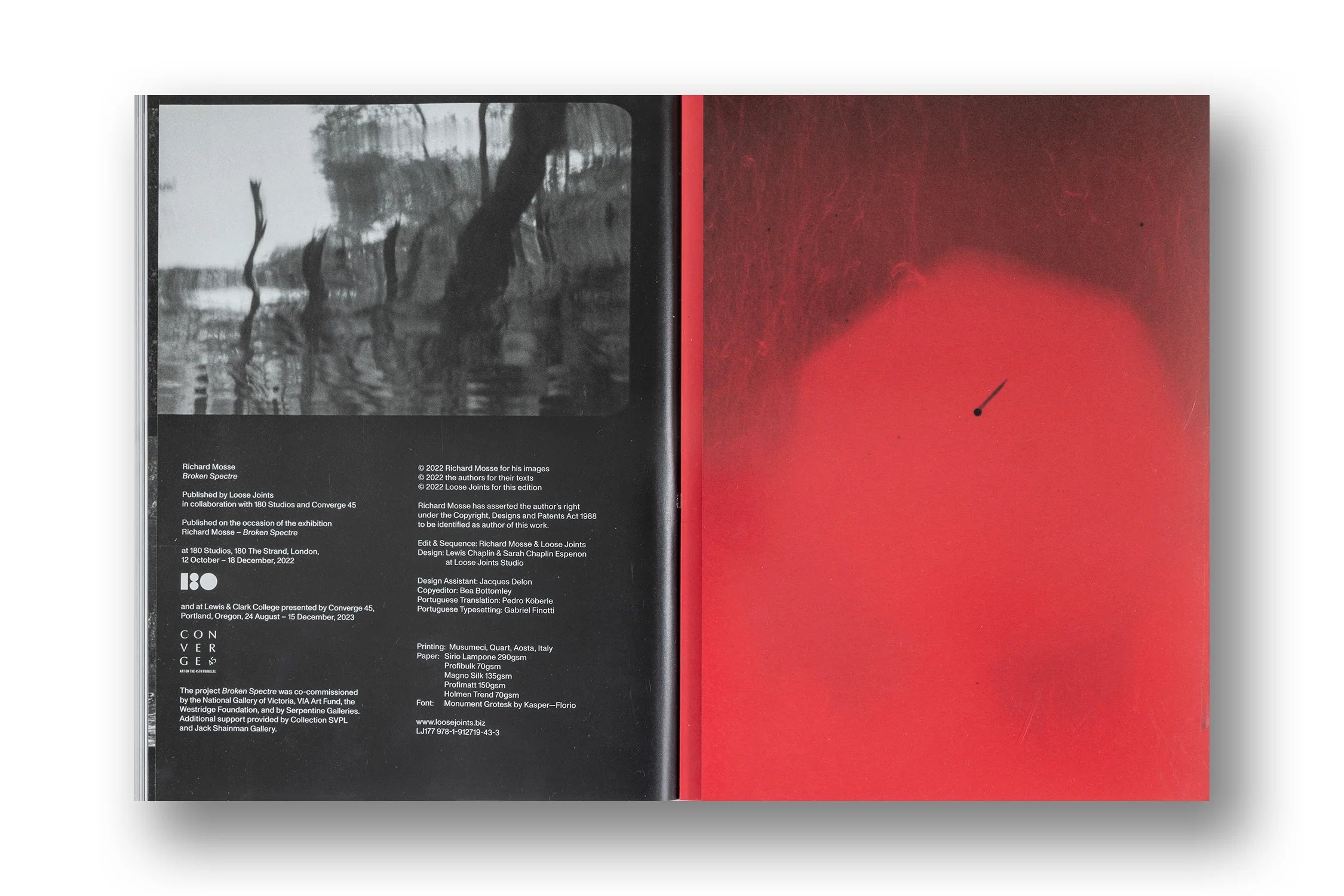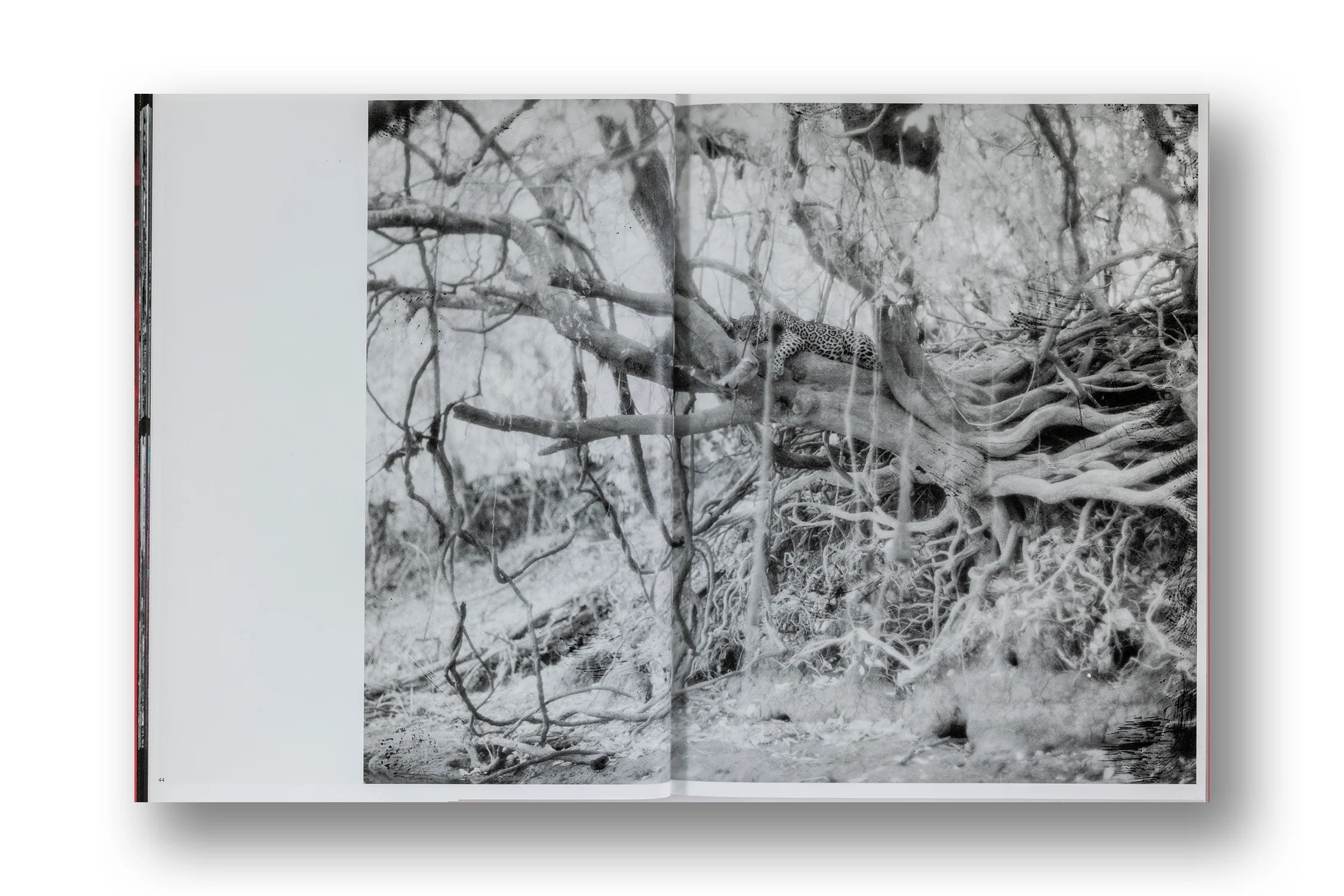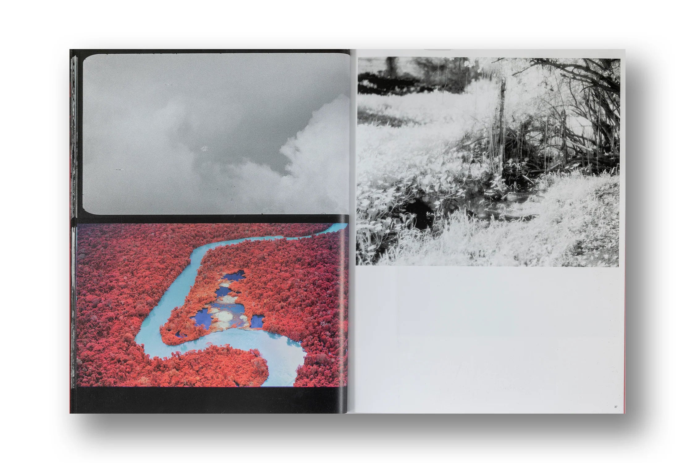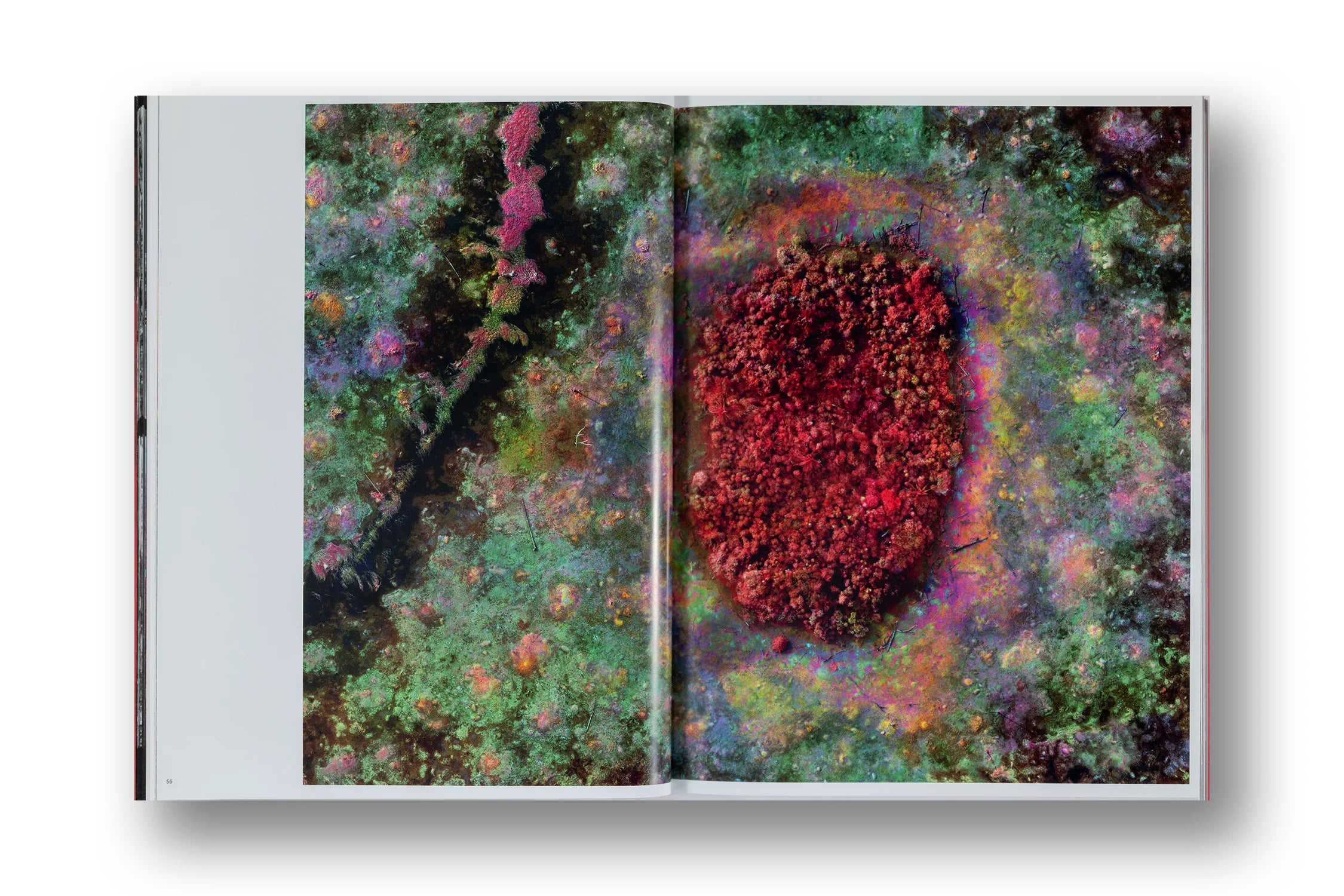 In accompanying photographic works, Mosse renders the invisible visible: through multispectral cameras that emulate satellite imaging technology, alongside ultraviolet botanical studies, and heat-sensitive analogue film warped, mottled and degraded by the oppressive environment and by the burning forest itself. Accompanying these experimental documentary works are Mosse's hypnotically vivid aerial maps, which zoom out and colourise the scale and extent of natural decimation in piercing detail, employing specially-made Geographic Information System (GIS) imaging technology.