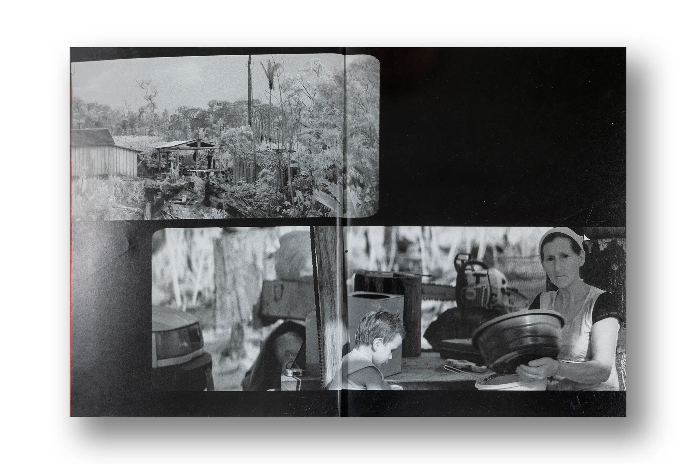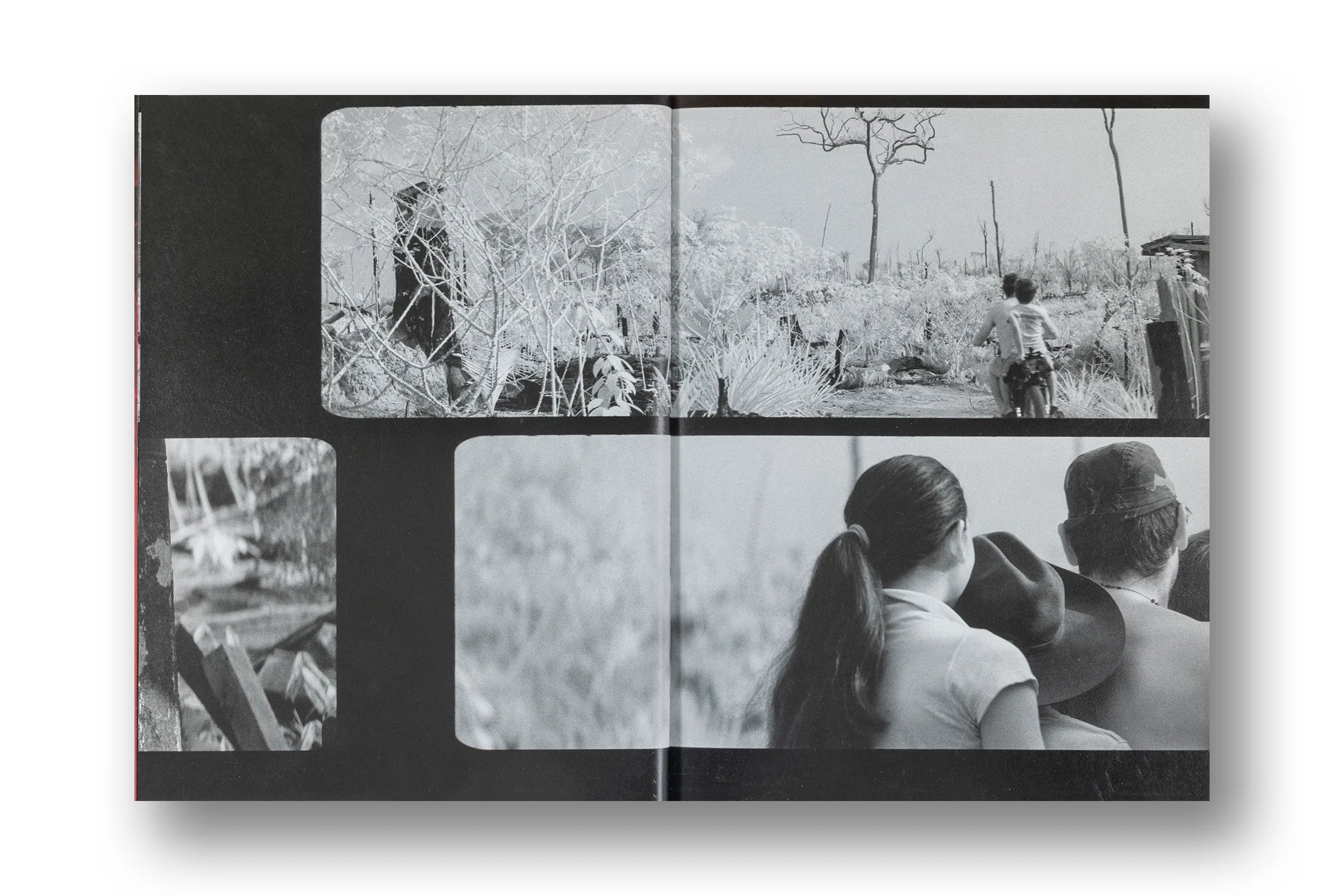 Broken Spectre operates on multiple scales: inky, fluorescent microscopic imagery describes the interdependent complexity of the Amazonian biome in scientific detail, while cinematic monochrome infrared scenes track illegal mining, logging and burning, industrial agriculture and indigenous activism.