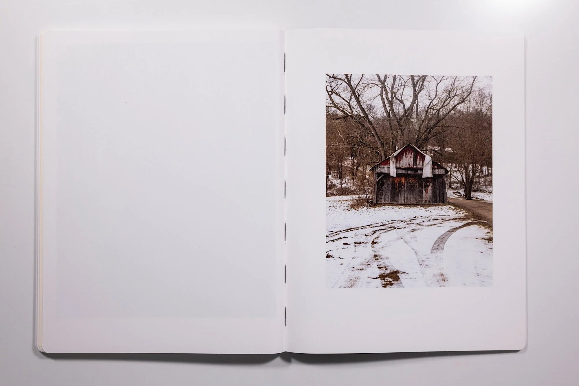 The origins of Snow lie in a commission (this from an artist who very rarely works on assignment, although Winship says she often approaches things “as if I have somehow been sent by someone”), but the photographer’s interest in what she found soon eclipsed anything that could properly be thought of as a “story.” So she made repeated trips to a particular landscape – and, notably, a particular season – in order to fathom what it was that had disconcerted her in the initial making of these photographs.