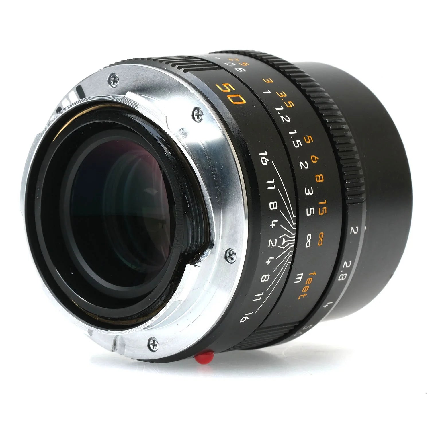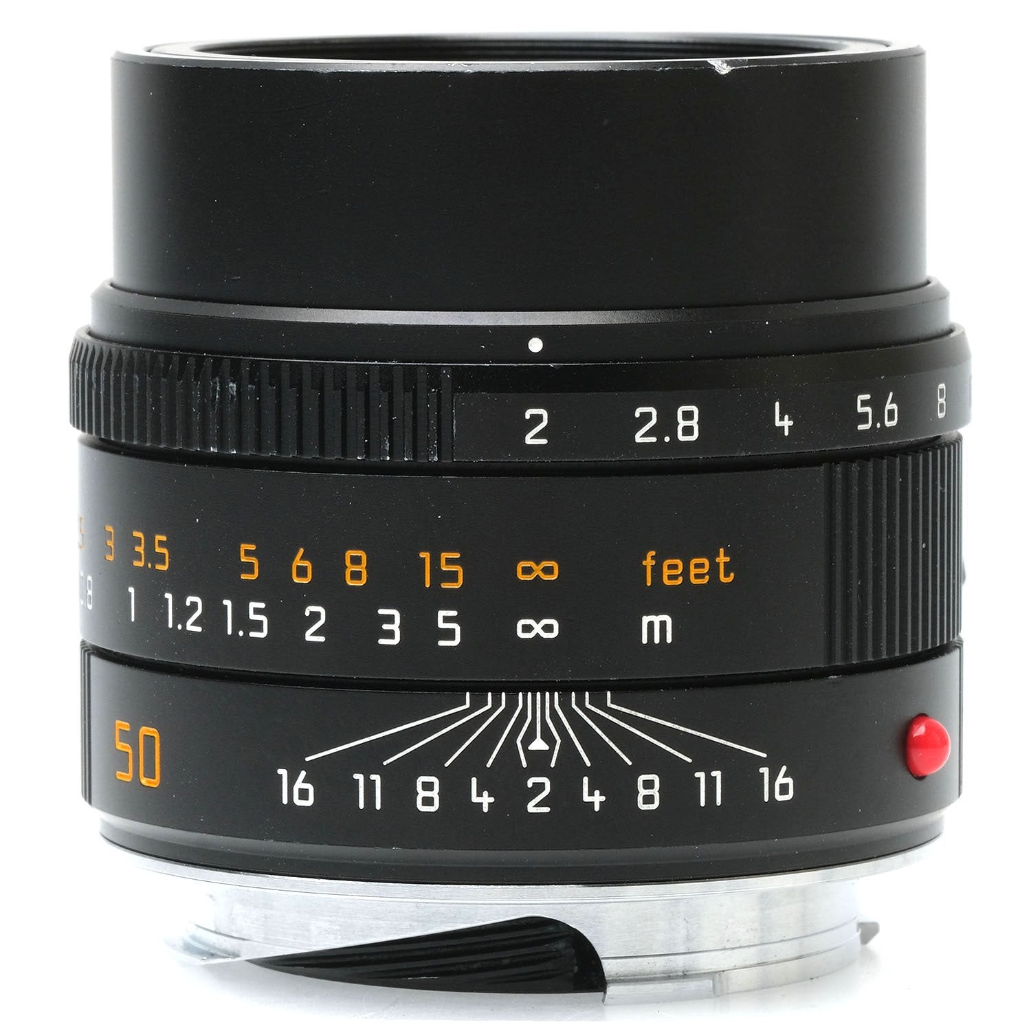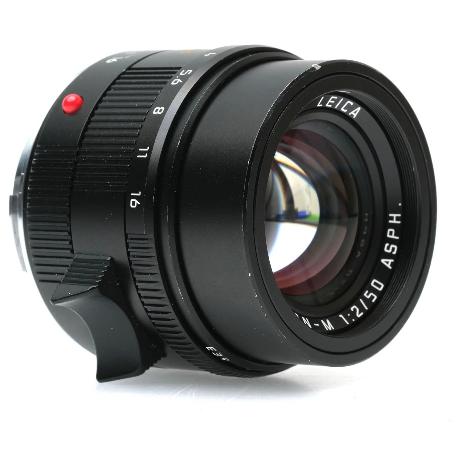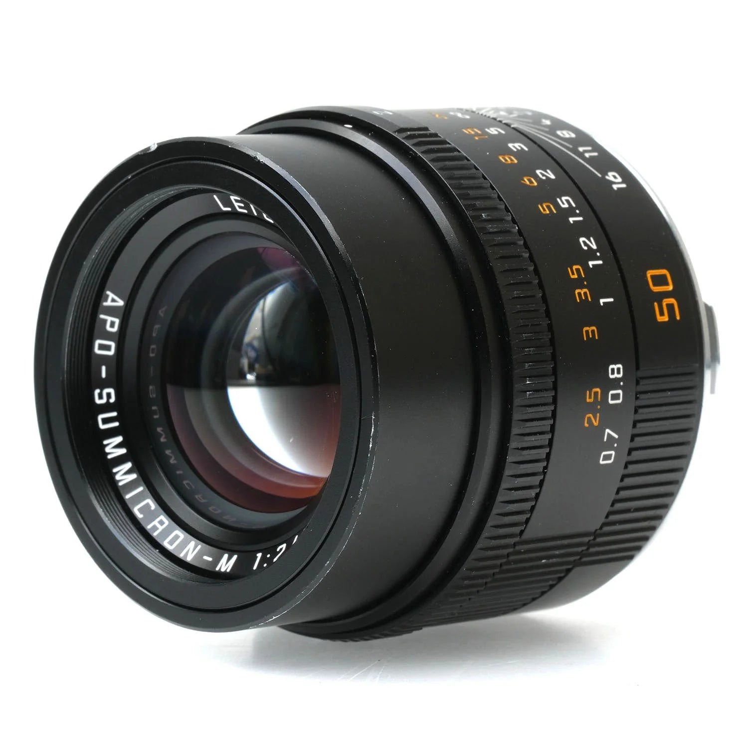 This Leica 50mm f2 APO-Summicron-M Asph Lens (Black), #4296376, is in good condition with some handling wear. I rate it cosmetically an (8+). The focus and aperture rings are smooth, the aperture functions properly, and the glass is clean and clear with no haze, marks, or fungus. There are a few faint specks of dust inside, but they do not affect image quality. This lens includes front & rear caps.