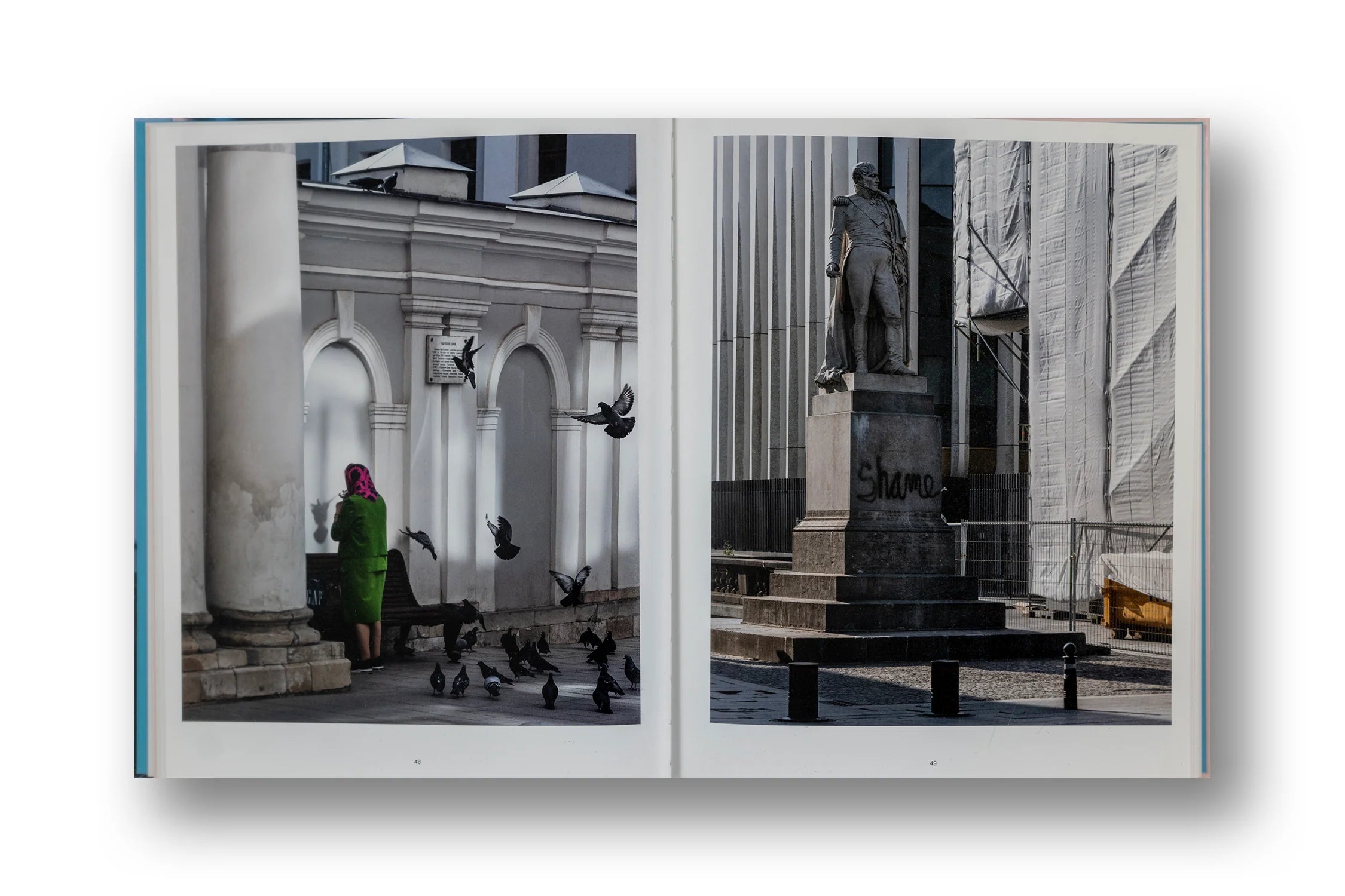 Image Cities takes us on a journey through cities the Globalization and World Cities Research Network ranks highest according to their degree of “global interconnectedness.” We find them in a process of transformation concealed behind dummy façades onto which a sense of heightened anticipation has been projected. It would be tempting to read these photographs as a polemic against the triumph of consumerism and a slowly numbing global visual-economic order that wraps itself around whatever once felt local and civic. Samoylova’s photography is full of masterful refinements of the existing clichés of urban photography: Citizens dwarfed by giant images. Faces and bodies refracted through glass. The Pop-Cubism of visual bricolage. The minuscule human figures that stroll seemingly indifferent through city space while being at least partly somewhere else in their imaginations― their existence already a collage of places and times. Yet, Samoylova consciously engages with cliché, takes it apart and reassembles it, gambling that it can be taken to a level of pictorial sophistication that eludes any simple argument or statement. Instead, she invites us to reflect on photography’s role in the creation of a gap between these citie’s brand identity and their everyday reality.