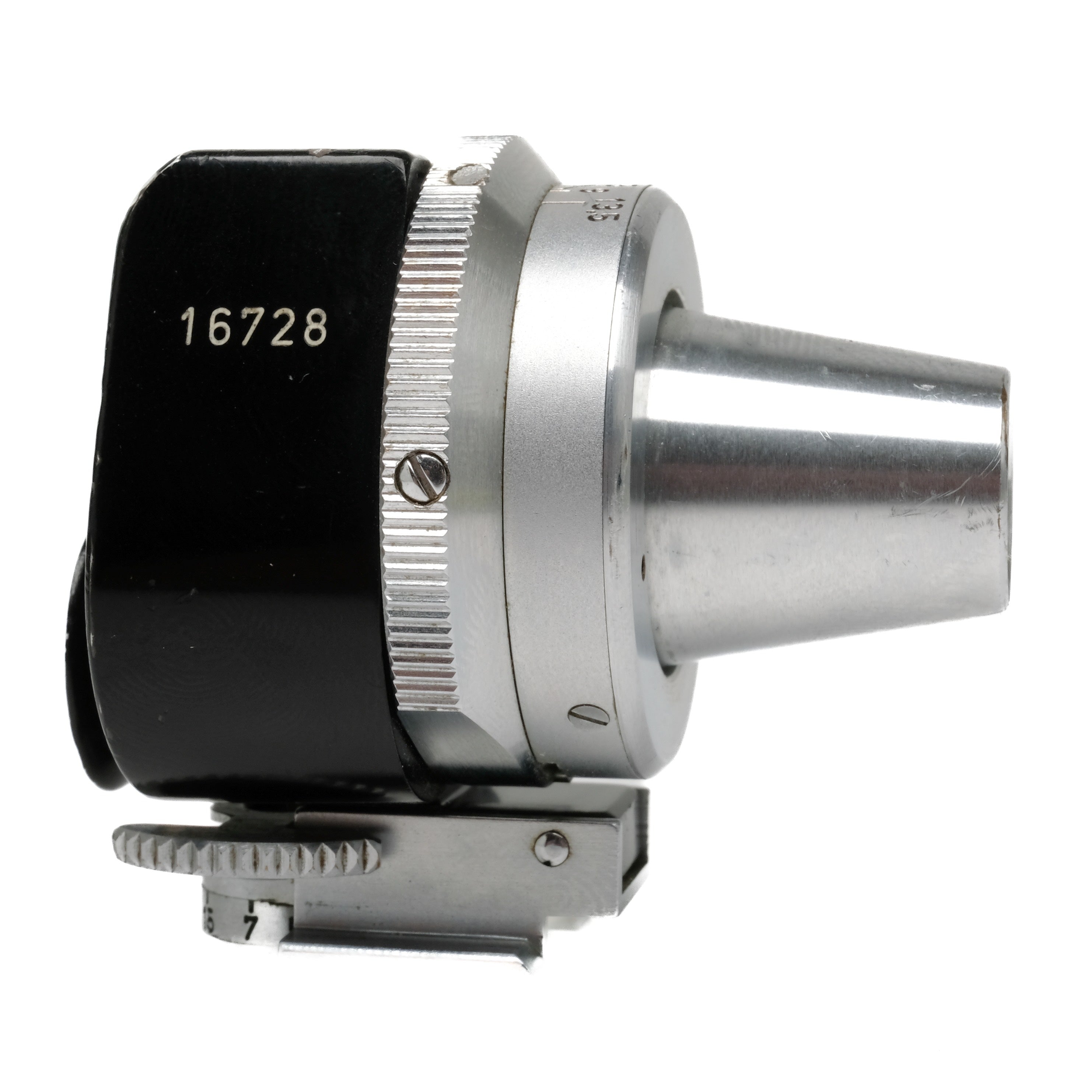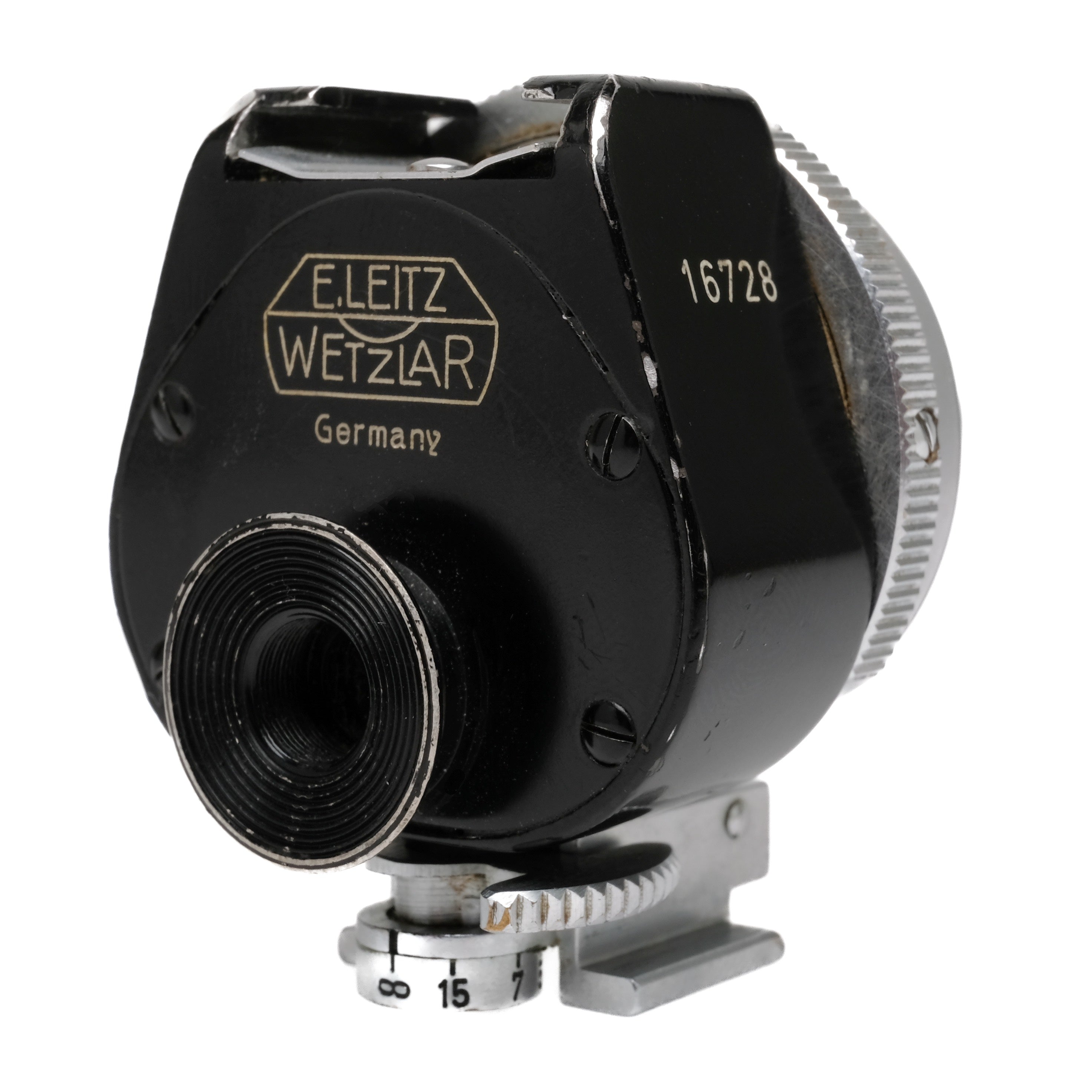 This Leica Imarect VIOOH Finder is in average cosmetic condition with normal handling wear found throughout, please see photos for visual reference. Cosmetically, this finder has been rated at an (8) condition. The finder functions properly and is ready to use.