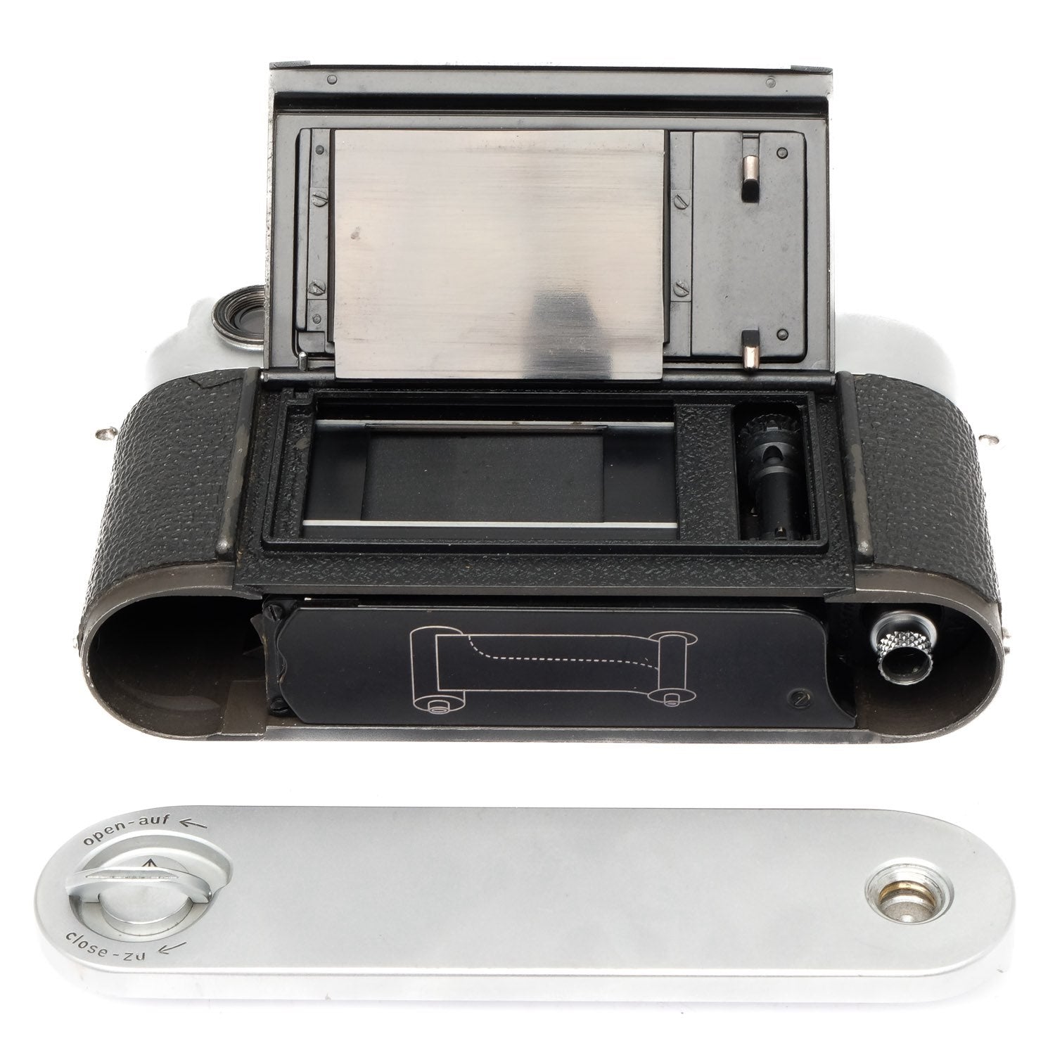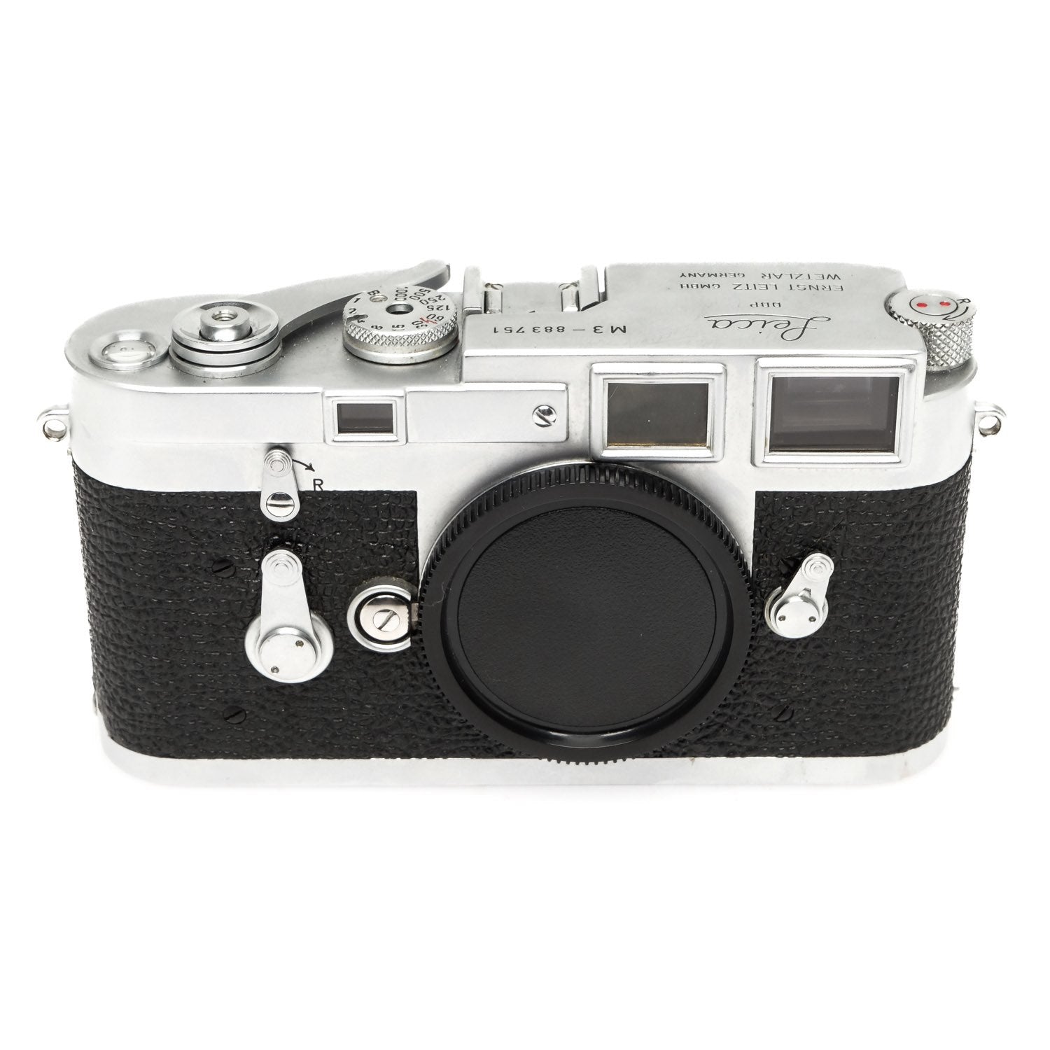 This Leica M3 DS, is in good condition with only minor handling and edge wear. I rate this cosmetically (8+). This camera is in proper working order, the viewfinder is clear with a bright rangefinder. The frame lines are accurate and the film advance and rewind are smooth. The shutter is accurate at all settings. This camera comes with cap.