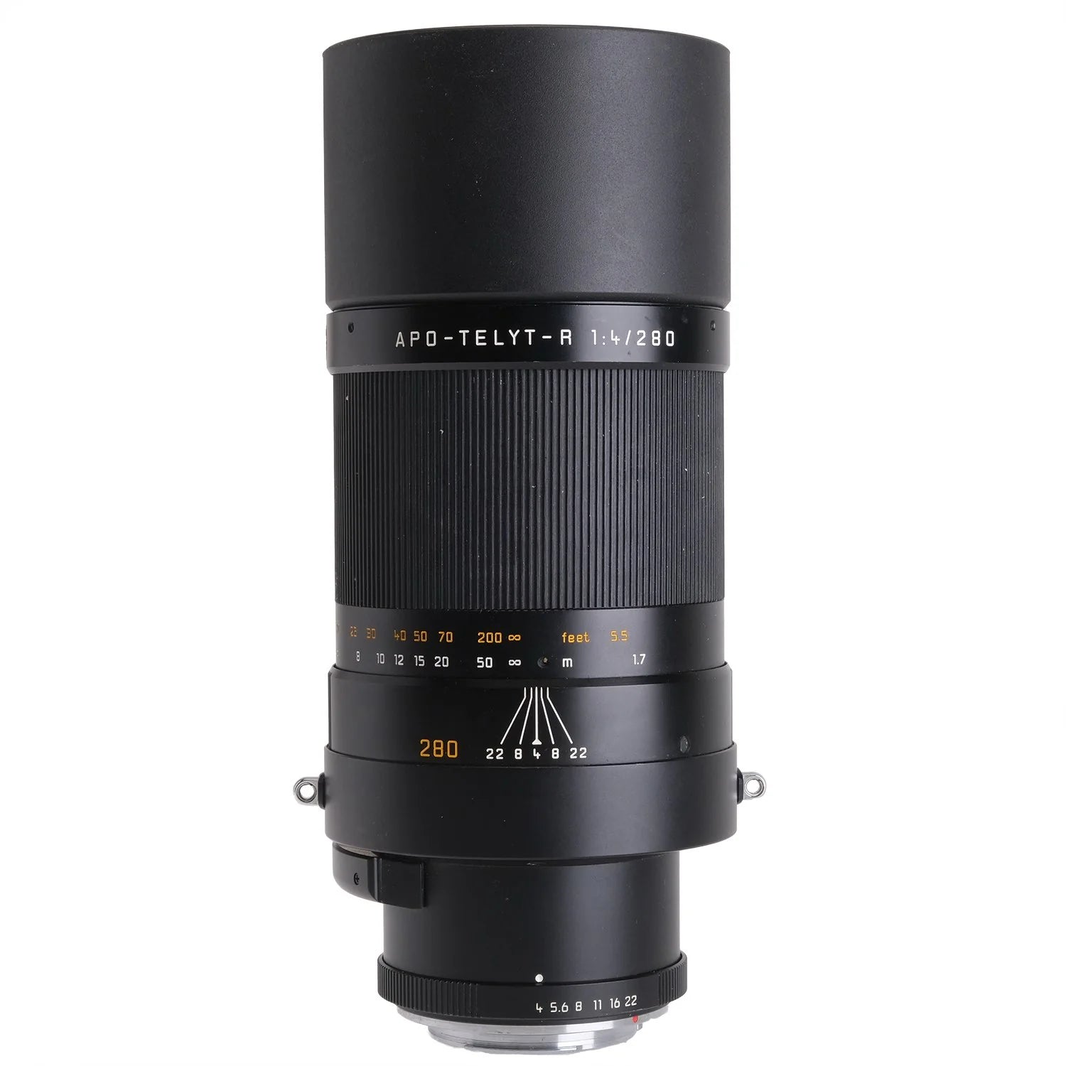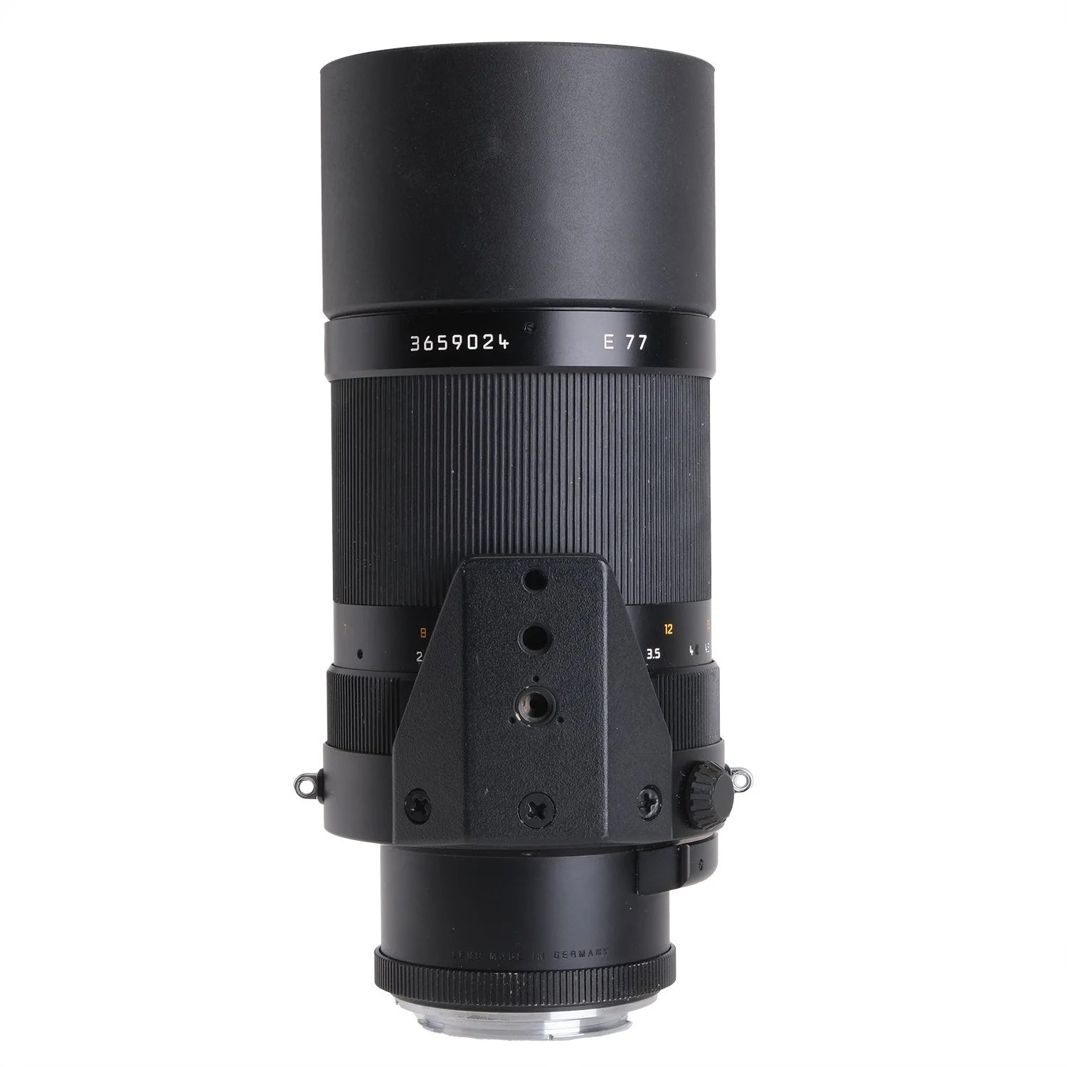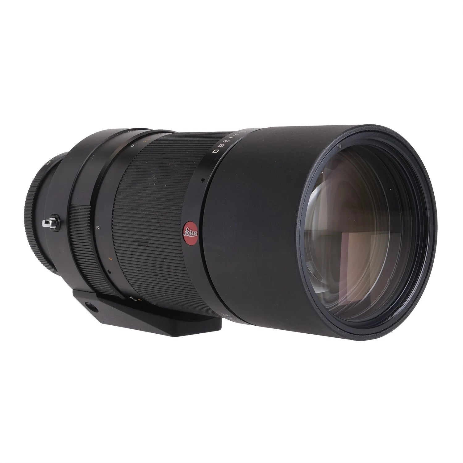 This Leica 280mm f4 Apo-Telyt-R Lens #3659024, is in average cosmetic condition with heavy signs of handling wear found throughout, please see photos for visual reference. Cosmetically, this lens has been rated at a (8+) condition. This lens is in proper working order; the aperture and focus turn smoothly, and the glass is clean and clear with no signs of fungus, haze, or marks present. This lens comes with a rear cap only. This lens is ready for use!