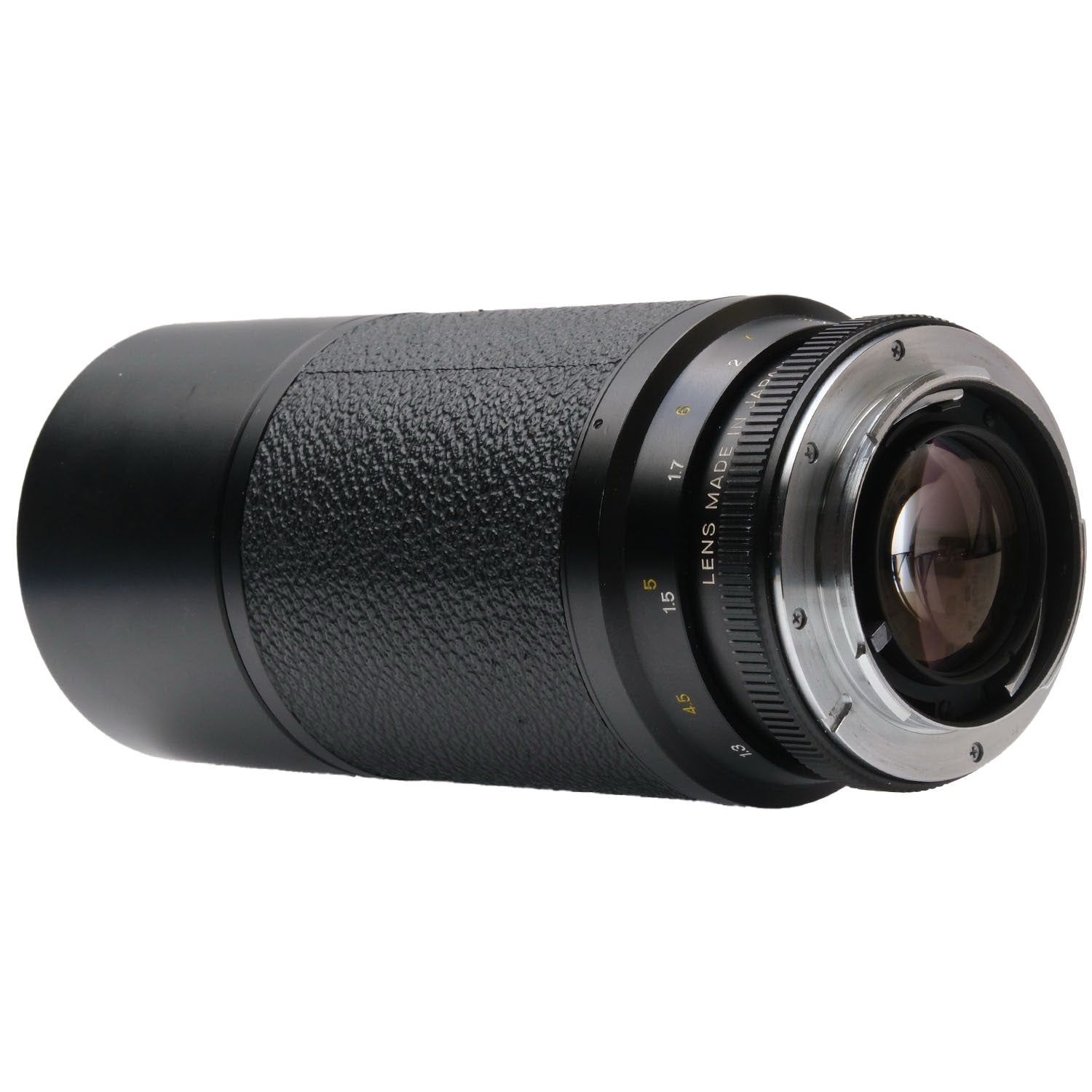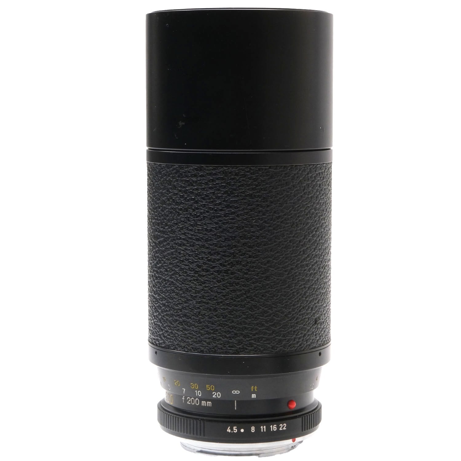 This Leica 75-200mm f4.5 Vario-Elmar-R Zoom Lens (3-Cam), #3043886, is in great condition with minor handling wear. I rate it cosmetically a (9+). The aperture ring and zoom are smooth, but the focus ring is a bit stiff. The aperture functions properly and the glass is clean and clear with no haze, marks, or fungus. There are a few faint specks of dust inside, but they do not affect image quality. This lens includes front & rear caps. Please refer to the photos for details.