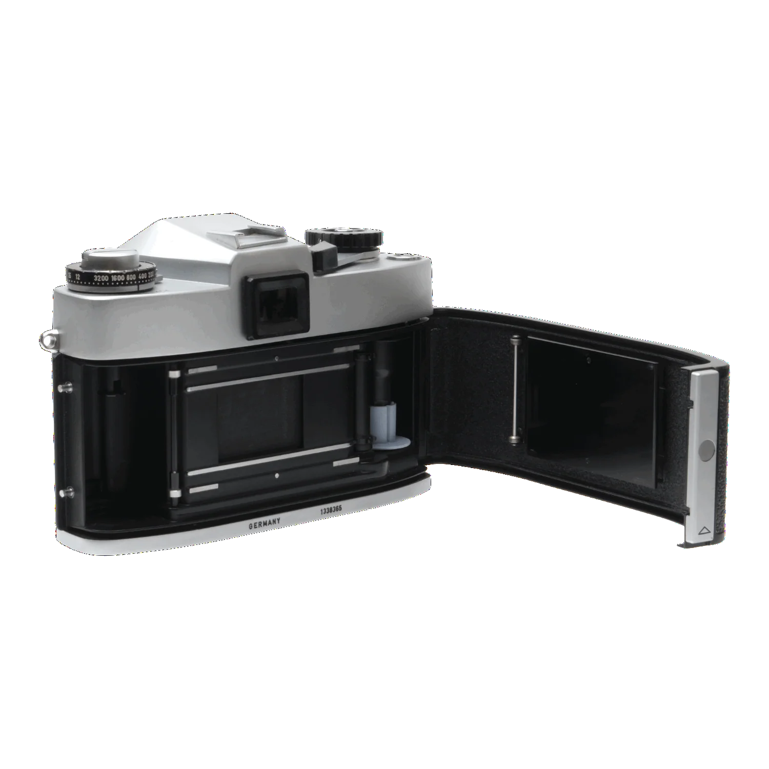 This Leica Leicaflex SL (Silver), #1338365, is in good condition with some handling wear. I rate it cosmetically an (8+). The camera is in proper working order; film advances properly, the shutter is accurate at all speeds, the meter functions, and the battery compartments are corrosion-free. The viewfinder faint specks and edge separation, but is otherwise clear. This camera includes a body cap and the original box. It uses one (1) PX625A battery (not included). Please refer to the photos for details.