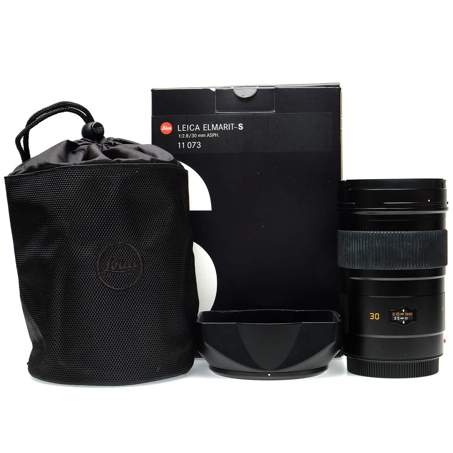 This Leica 30mm f2.8 Elmarit-S Asph Lens, #4151444, is in great condition with minor handling wear. I rate it cosmetically a (9+). The focus ring is smooth, the autofocus and aperture function properly, and the glass is clean and clear with no haze, marks, or fungus. There are a few faint specks of dust inside, but they do not affect image quality. This lens includes a Leica lens pouch, lens hood, front & rear caps, and the original box.