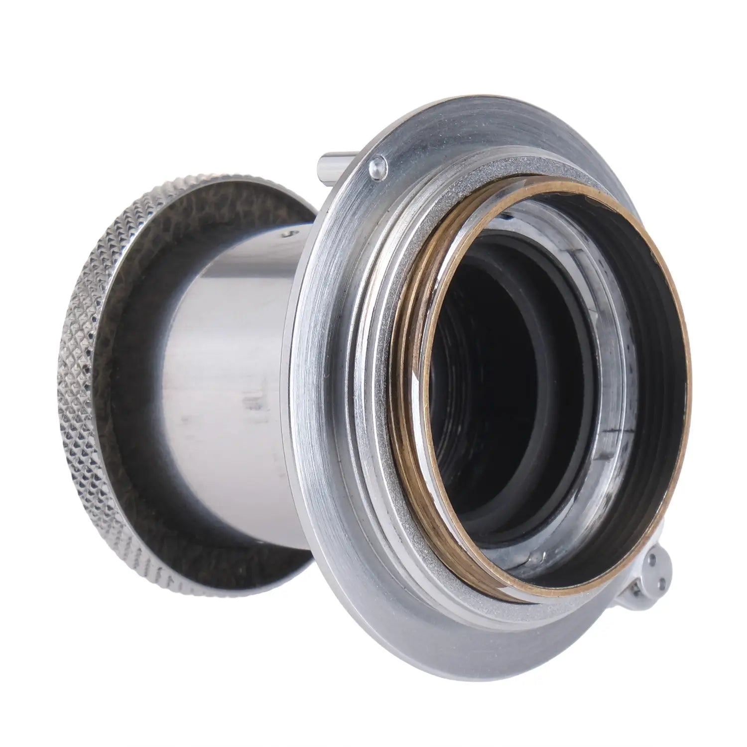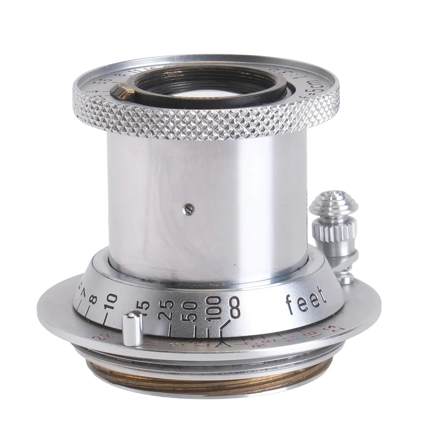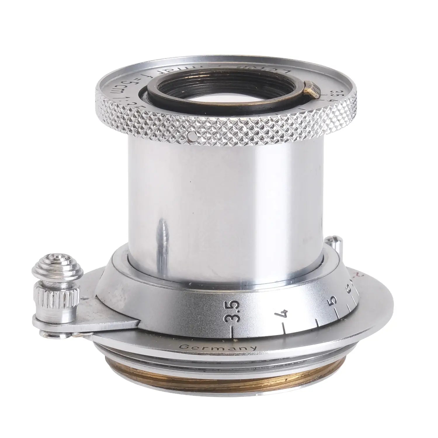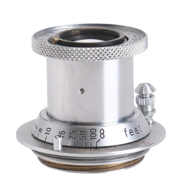 This Leica 5cm f3.5 Elmar SM Lens #1122948, is in excellent cosmetic condition with slight signs of handling wear found throughout, please see photos for visual reference. Cosmetically, this lens has been rated at a (9+) condition. This lens is in proper working order; the aperture and focus turn smoothly, and the glass has faint haze which should not affect image quality. There are no signs of fungus or marks present. This lens comes with a rear cap only and is ready for use!