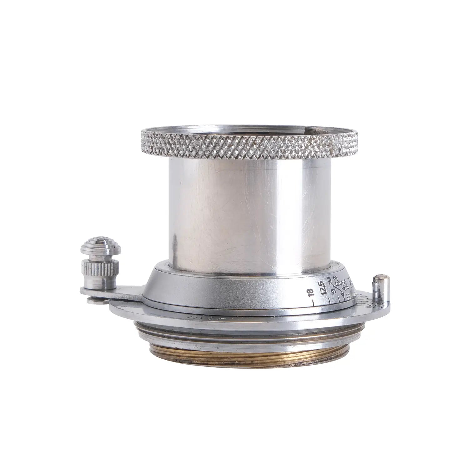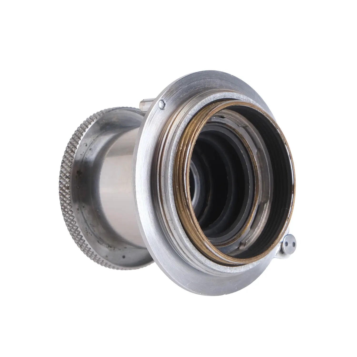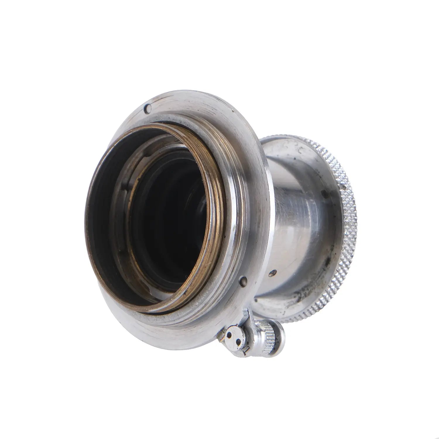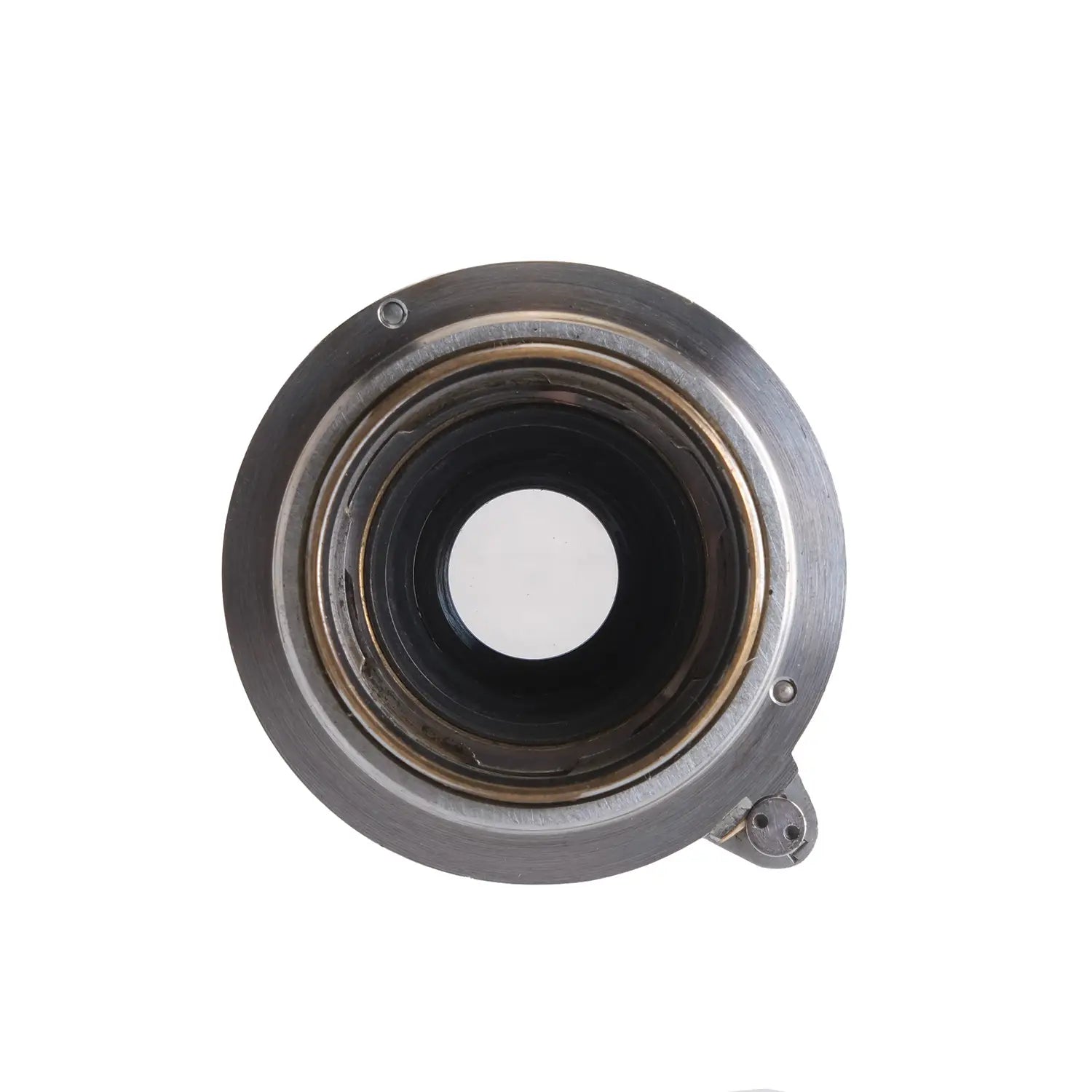 This Leica 5cm f3.5 Elmar SM Lens #D2104, is in average cosmetic condition with heavy signs of handling wear found throughout, please see photos for visual reference. Cosmetically, this lens has been rated at a (8+) condition. This lens is in proper working order; the aperture and focus turn smoothly, and the glass has faint haze which will not affect image quality. There are no signs of fungus or marks present. This lens comes with a rear cap only. This lens is ready for use!