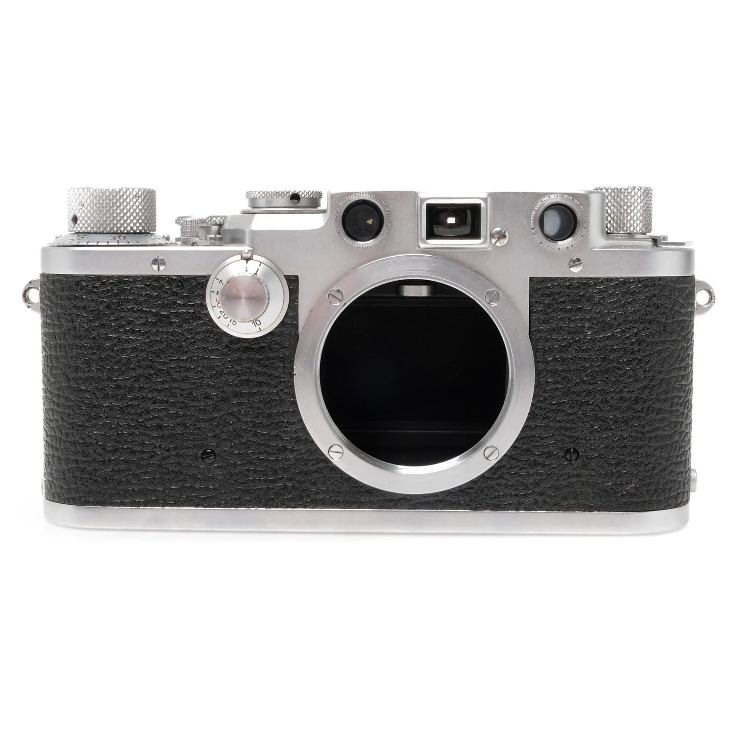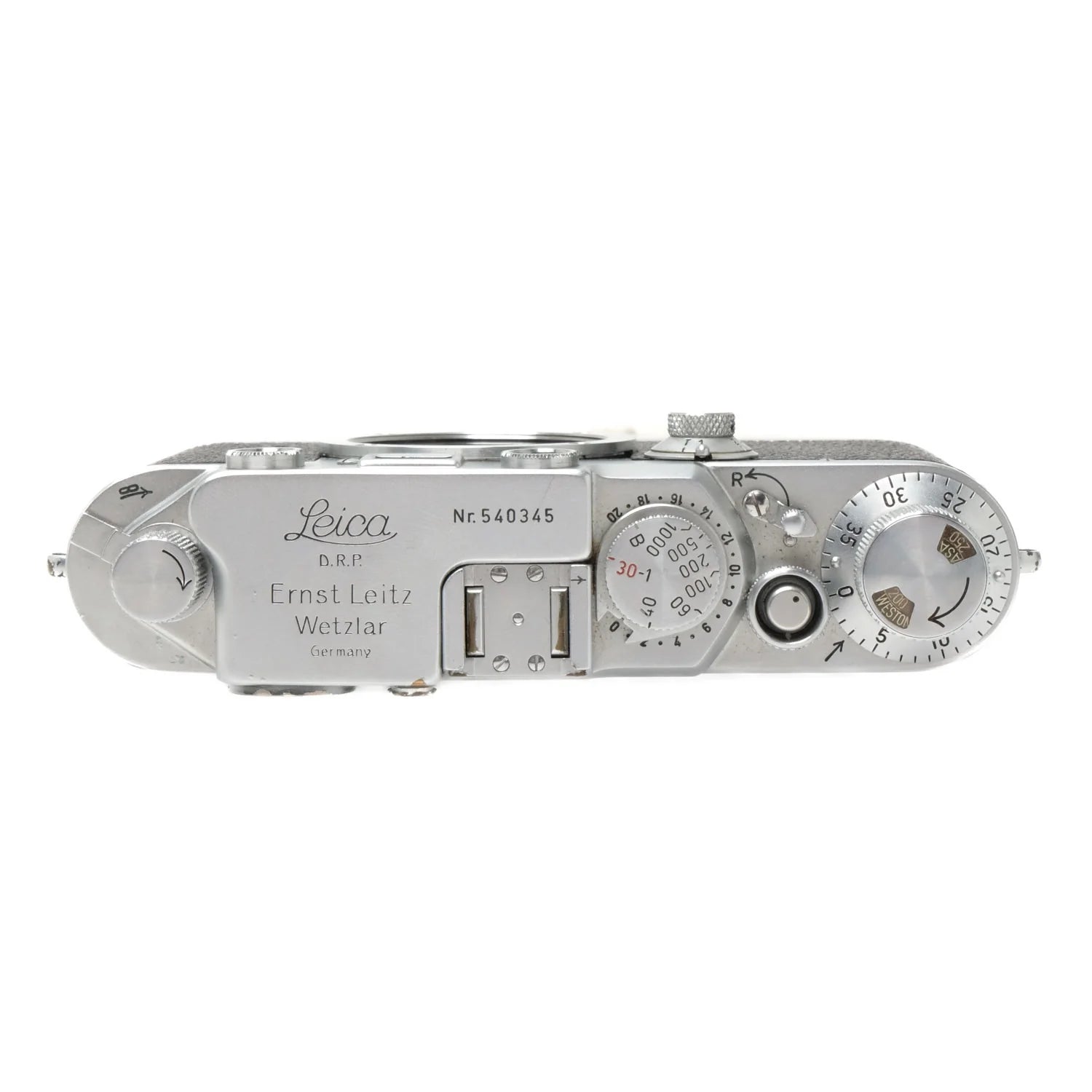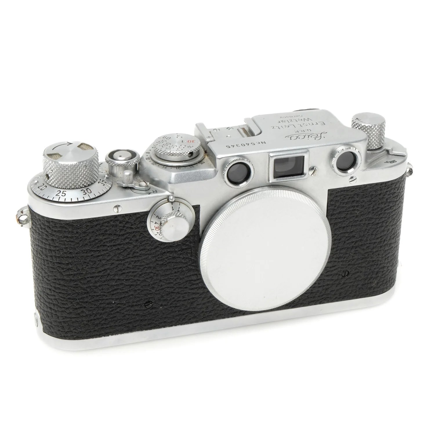 This Leica IIIf Black Dial, RF Dim, #540345, is in good condition with only minor handling and edge wear. I rate this cosmetically (8+). This camera is in proper working order, the viewfinder is clear but range finder is dim. The frame lines are accurate and the film advance and rewind are smooth. The shutter is accurate at all settings.