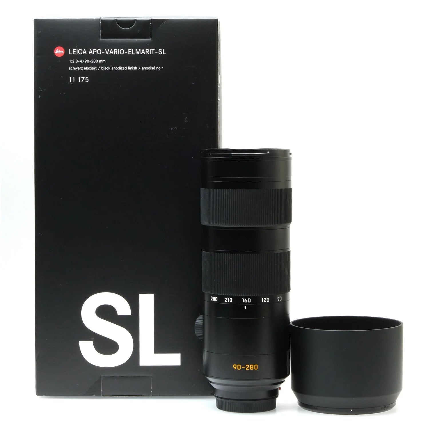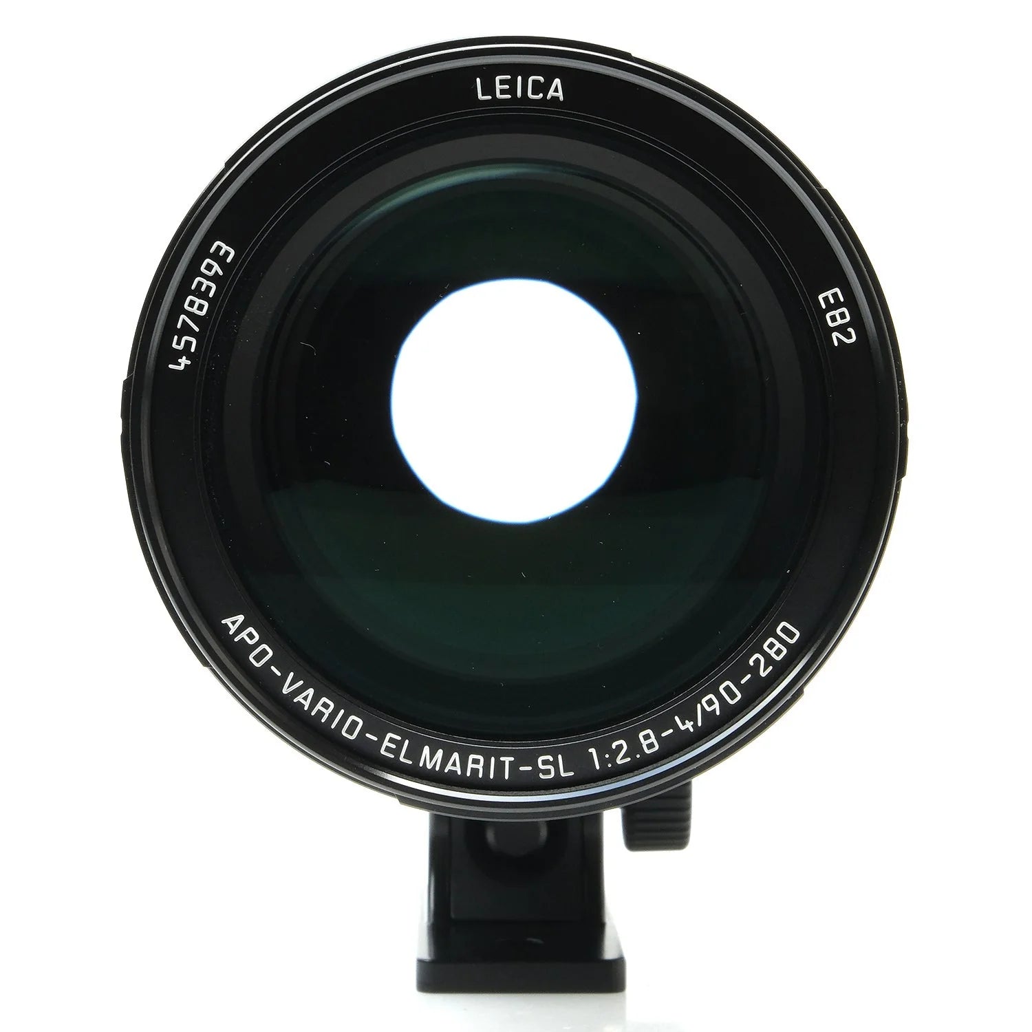 This Leica 90-280mm f2.8-4 APO-Vario-Elmarit-SL Zoom Lens, #4578393, is in great condition with minor handling wear. I rate it cosmetically an (9+). The focus and zoom rings are smooth, the autofocus and aperture function properly, and the glass is clean and clear with no haze, marks, or fungus. There are a few faint specks of dust inside, but they do not affect image quality. This lens includes a Leica pouch, a Leica lens hood, tripod mounting foot, front & rear caps, and the original instructions & box.