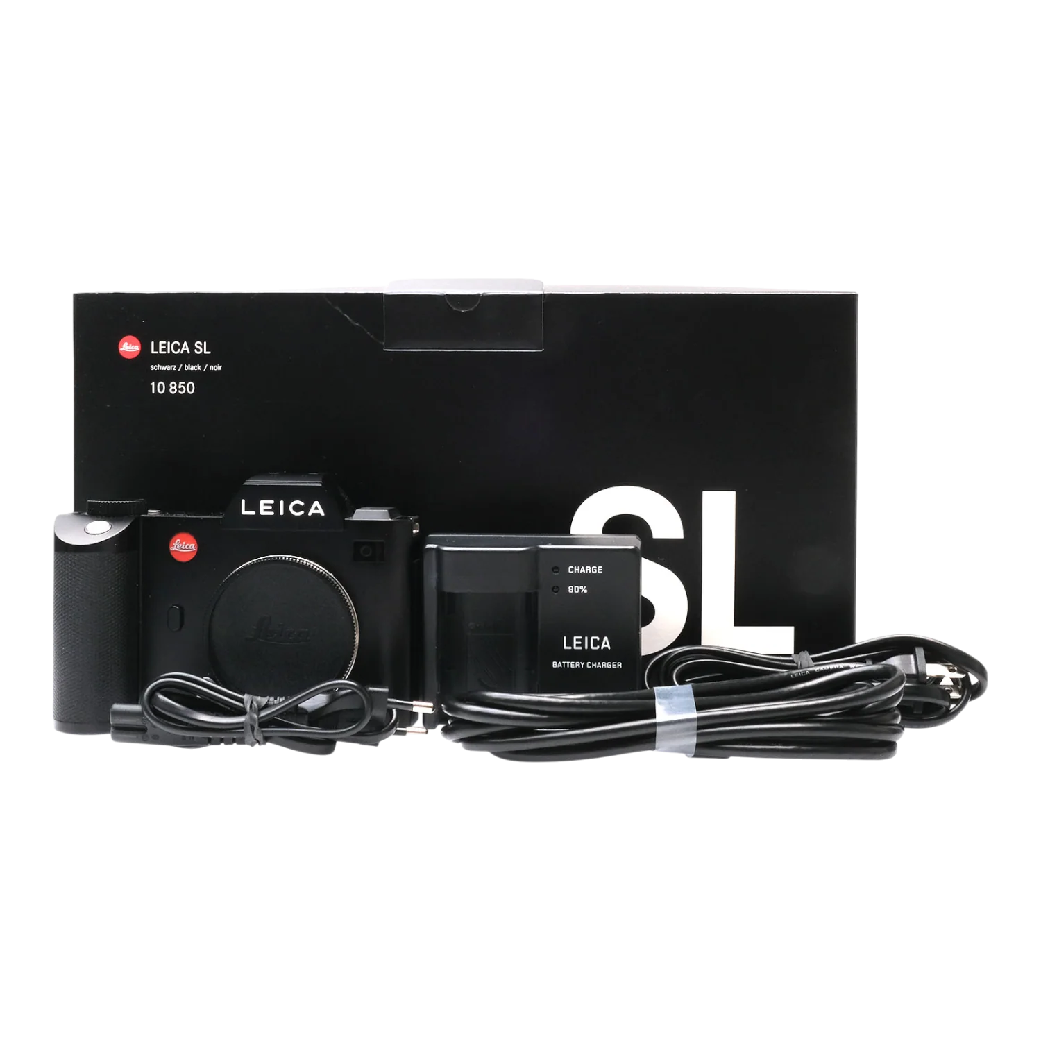 This Leica SL (Typ 601), #4965272, is in great condition with minor handling wear. I rate it cosmetically a (9+). The camera is in proper working order; the viewfinder is clear, the sensor is unmarked, and the memory card slots read & write. This camera includes a Leica battery, battery charger, charging cables, USB SuperSpeed cable, body cap, and the original instructions & box. Please refer to the photos for details.