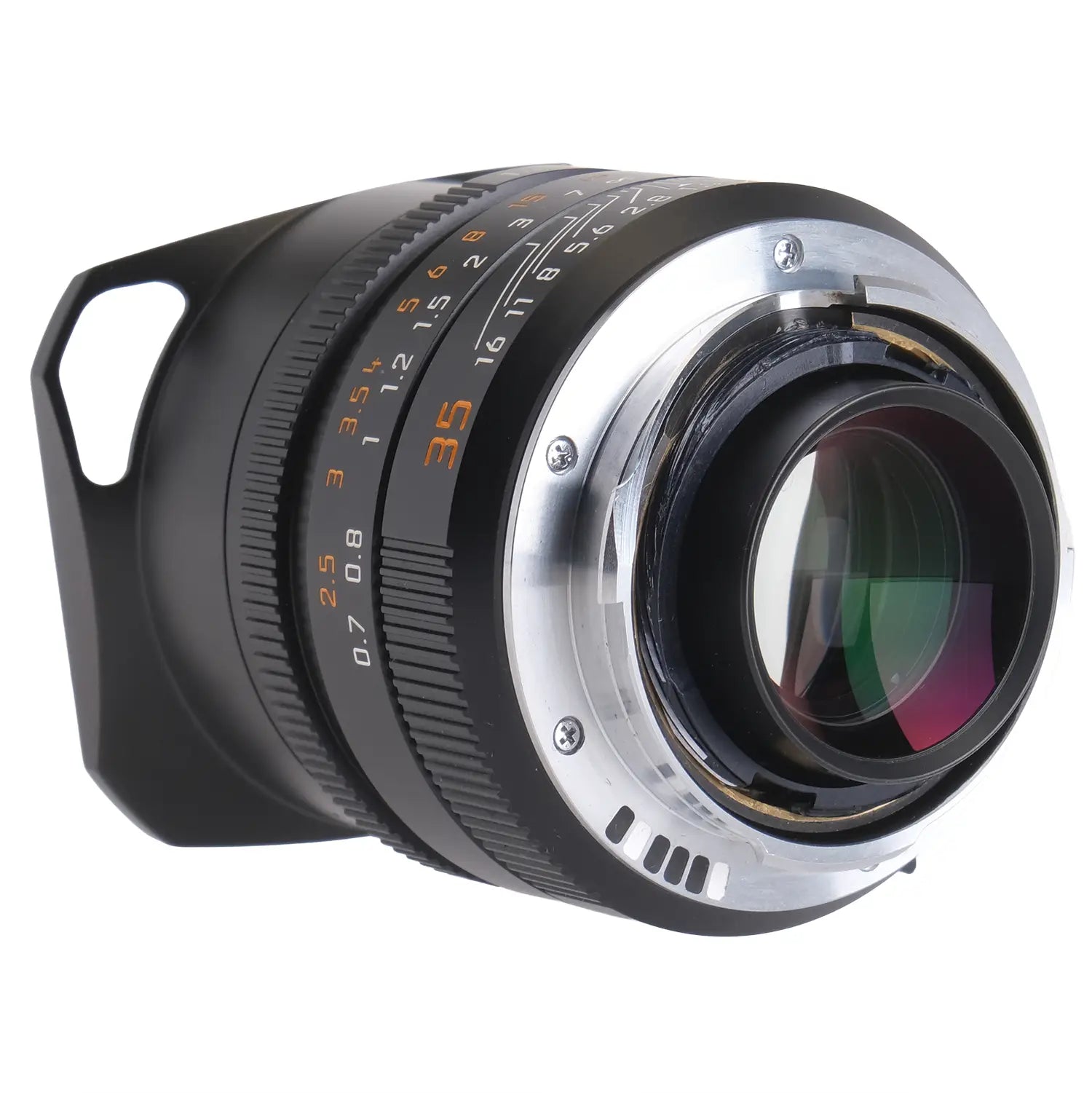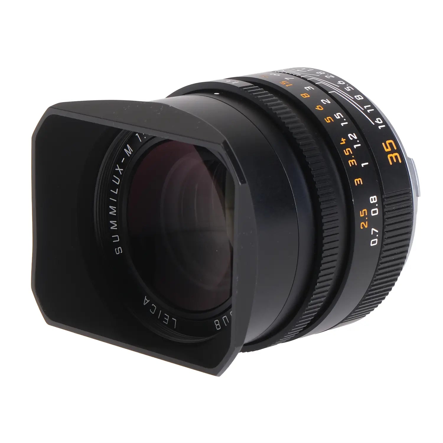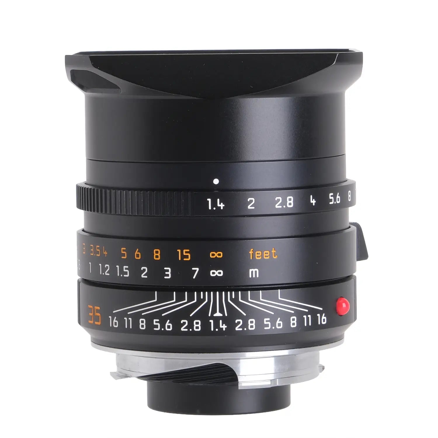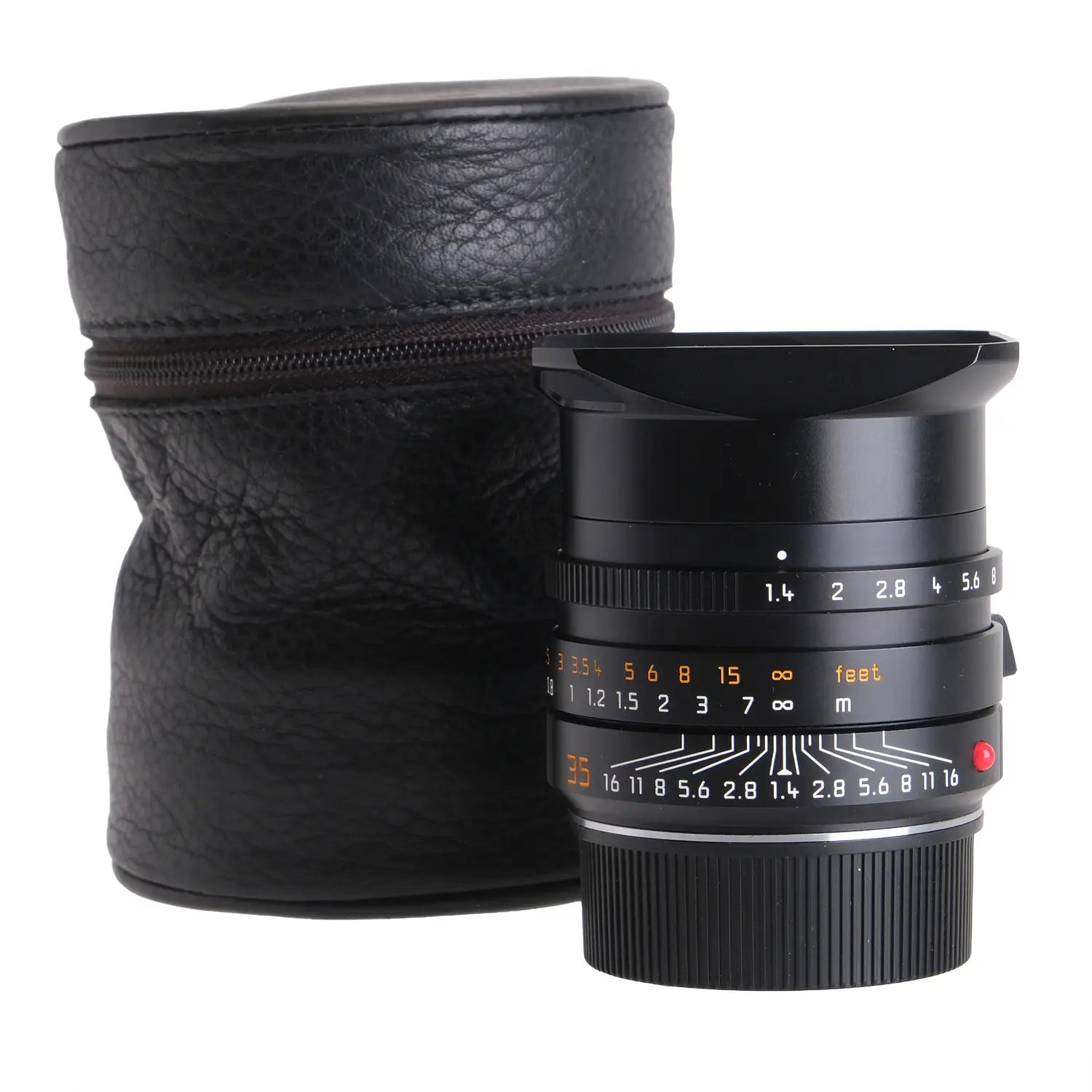 This Leica 35mm f1.4 Summilux-M ASPH II Lens Black #4194308, is in very good cosmetic condition with minor signs of handling wear found throughout, please see photos for visual reference. Cosmetically, this lens has been rated at a (9) condition. This lens is in proper working order; the aperture and focus turn smoothly, and the glass is clean and clear with no signs of fungus, haze, or marks present. This lens comes with a leather case and a rear cap only. This lens is ready for use!