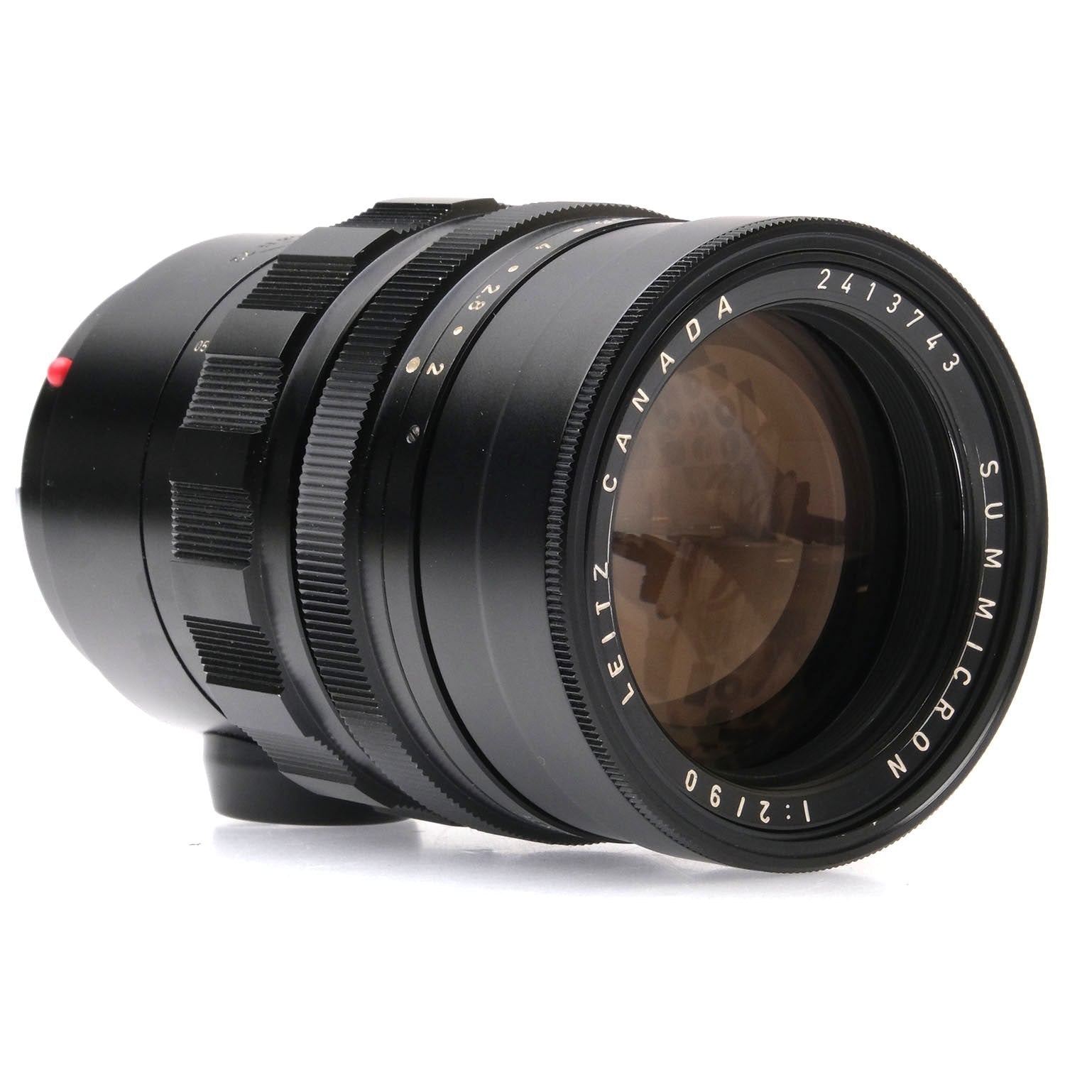 This Leica 90mm f2 Summicron M Lens (Black), #2413743, is in great condition with minor handling wear. I rate it cosmetically a (9+). The aperture ring is smooth, but the focus ring is a bit stiff. The aperture functions properly. The glass is clean and clear with no haze, marks, or fungus. There are a few faint specks of dust inside, but they do not affect image quality. This lens includes front & rear caps. Please refer to the photos for details.