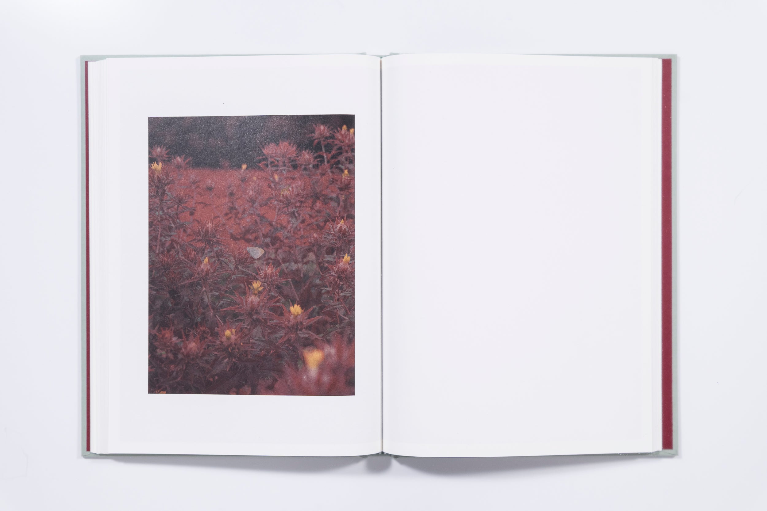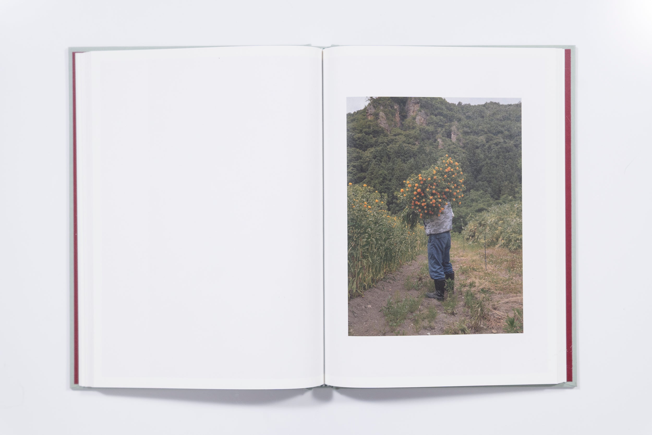 I WONDER WHOSE SKIN THIS CRIMSON FLOWER WILL TOUCH is the first volume in a collection dedicated to flowers. For this first edition, Teresa presents the safflower in Japan (Yamagata province). Using a primarily documentary approach, the photographer has been interested in flowers, the professions that revolve around these delicate plants, and the people who raise them for several years. The publication presented here is composed like a poem, in a more abstract and mute manner, in order to convey a particular mood and atmosphere.