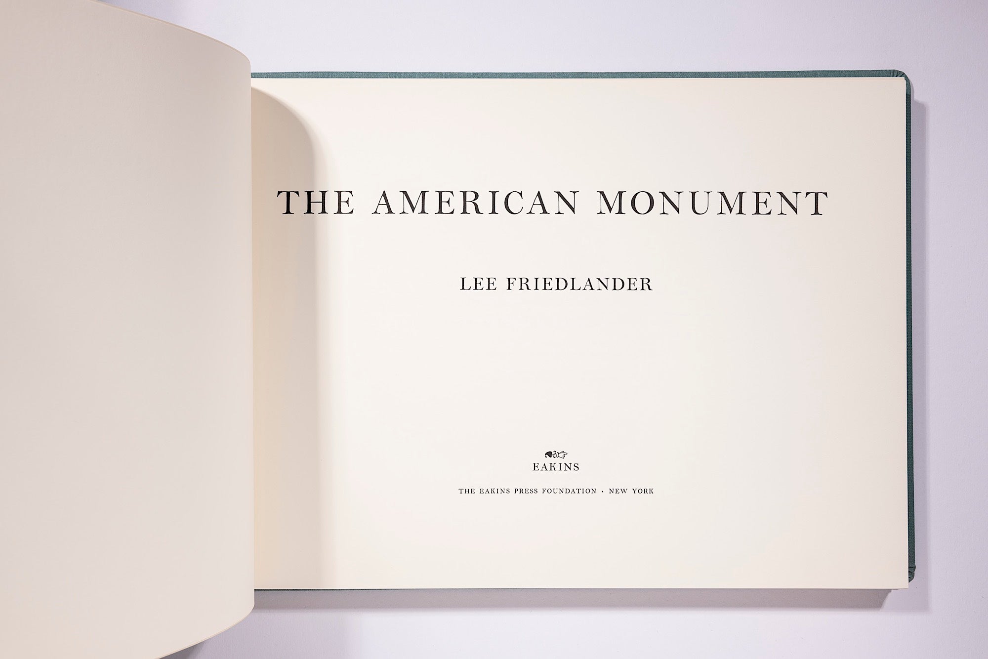 This album by Lee Friedlander is a memorial in photographs to the American monument. The photographs were selected from several thousand negatives and more than a thousand prints the photographer made of the subject during a dozen years while traveling throughout the United States. The curator John Szarkowski stated: “I am still astonished and heartened by the deep affection of those pictures, by the photographer’s tolerant equanimity in the face of the facts, by the generosity of spirit, the freedom from pomposity and rhetoric. One might call this work an act of high artistic patriotism, an achievement that might help us reclaim that word from ideologues and expediters.”