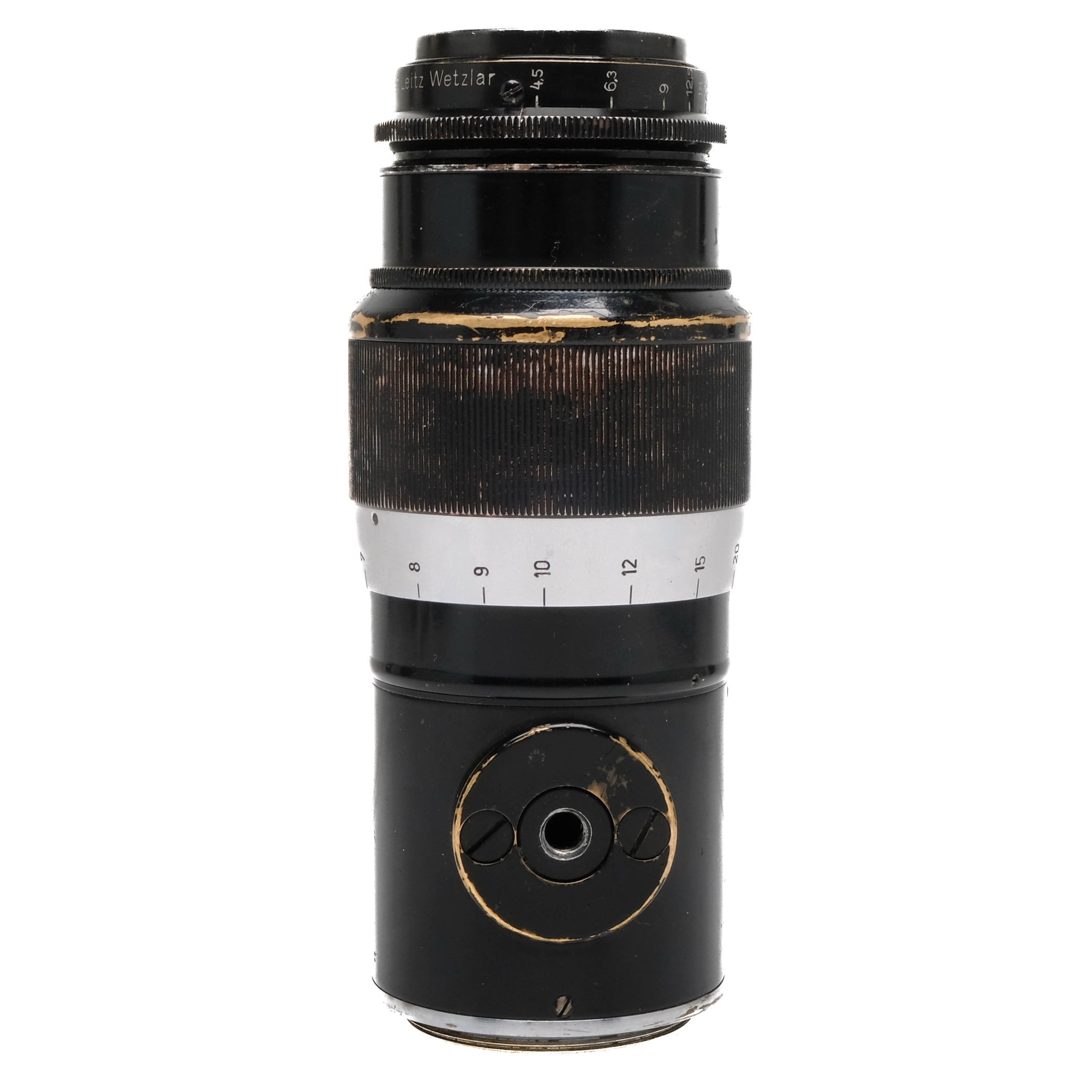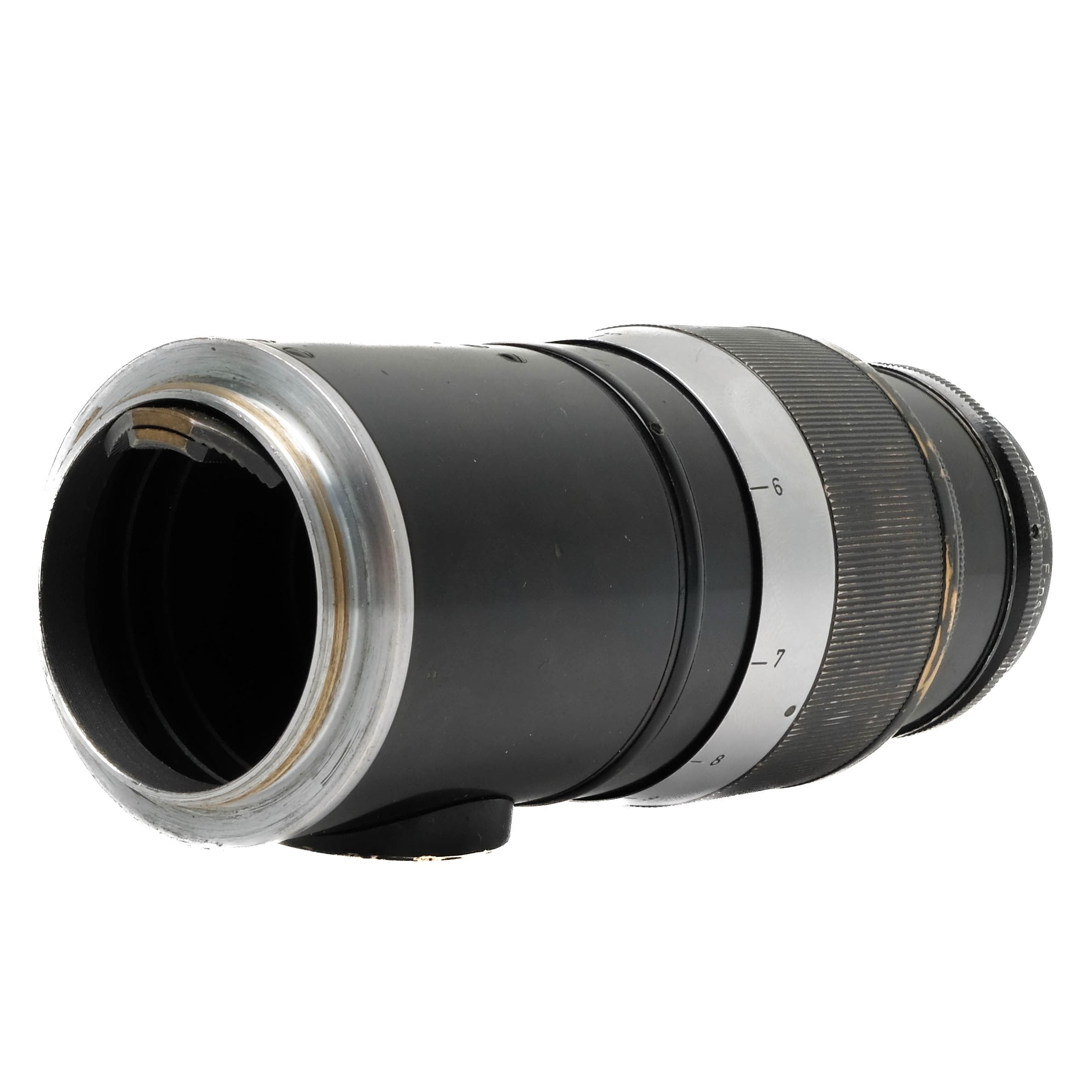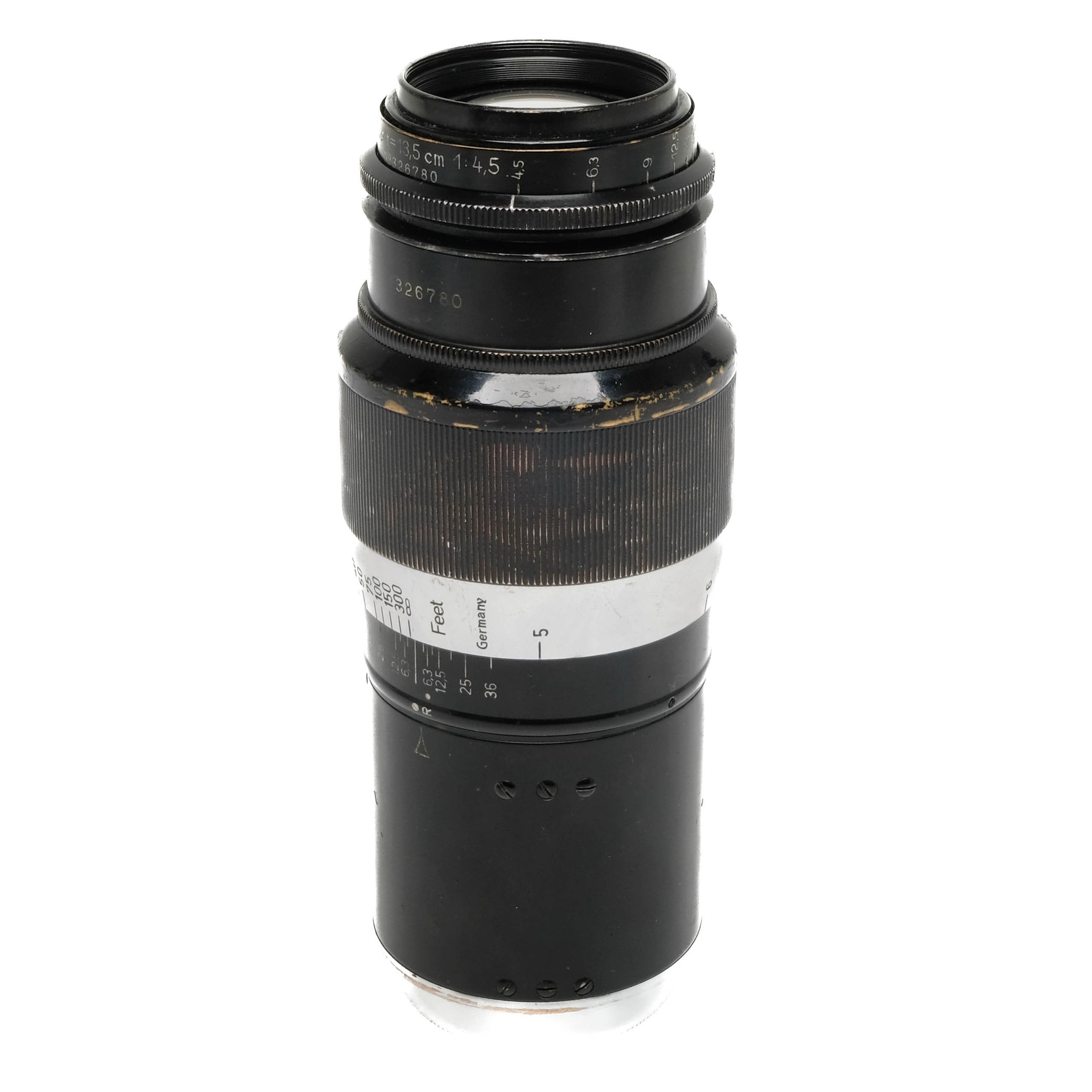 This Leica 13.5cm f4.5 Hektor 326780 is in bargain condition with noticeable signs of use and handling wear. I rate this cosmetically 7+. This lens is in proper working order, the focus is smooth and the glass is clean and clear with no marks fungus or haze. This lens comes with rear cap.