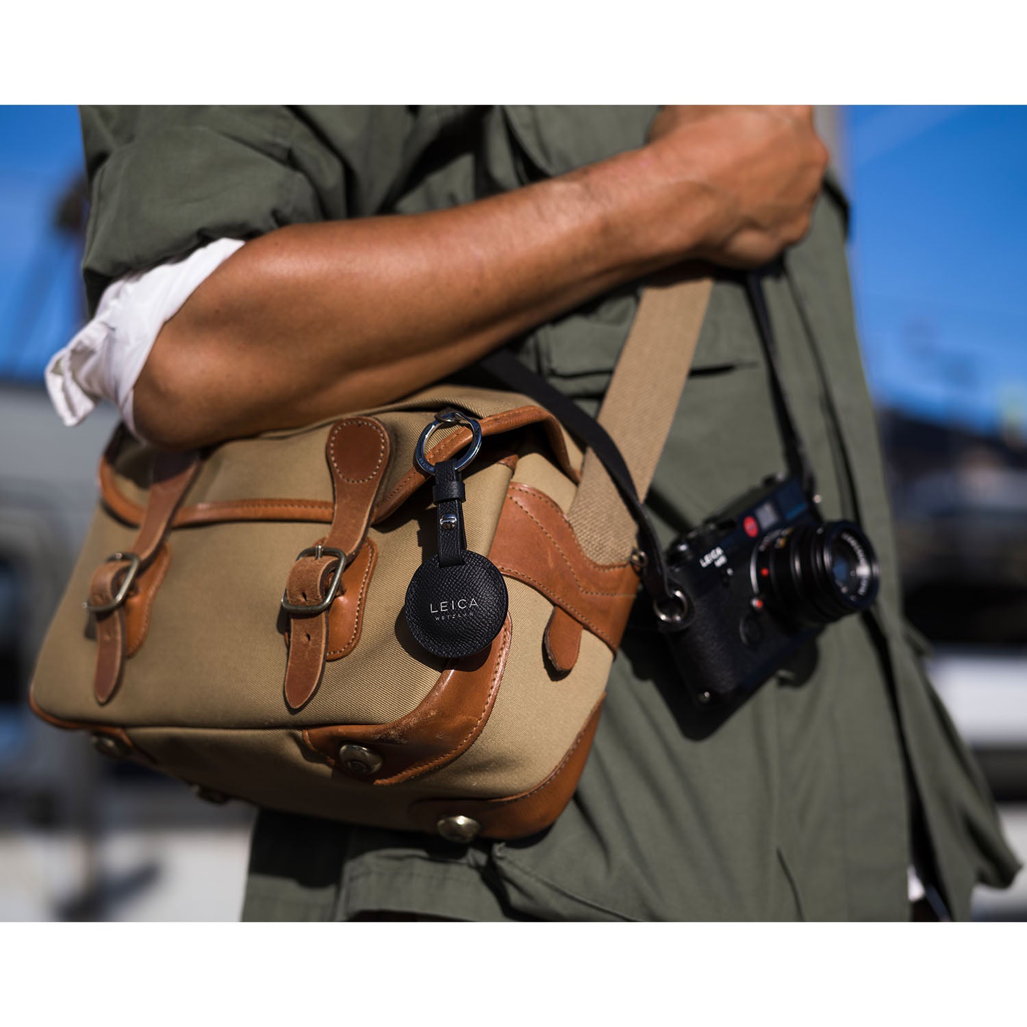 The AirTag Holder consists of a round leather piece with a slot for one AirTag, a leather strap and a metal ring for attaching the AirTag to a key ring, suitcase or bag. It is a stylish companion for everyday use and travel. The AirTag Holder is supplied without an AirTag.