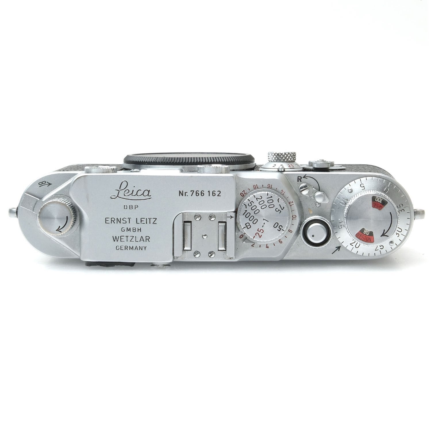 This Leica IIIf (Silver, Red Dial, Self Timer), #766162, is in good condition with some handling wear. I rate it cosmetically an (8+). The camera is in proper working order; film advances properly, the viewfinder is clear, the shutter is accurate at all speeds, the self-timer functions, and the rangefinder is accurate, although it is a bit dim. This camera includes a body cap. Please refer to the photos for details.