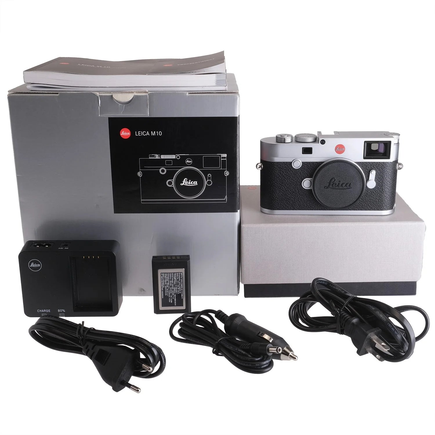 This Leica M10 Camera Body Silver #5196366, is in average cosmetic condition with significant signs of handling wear found throughout, please see photos for visual reference. Cosmetically, this camera has been rated at a (8+) condition. This camera is in proper working order; the finder is bright and accurate, the sensor is unmarked, and the memory card slot reads and writes. This camera comes boxed with instructions, a battery, and a charger. This camera is ready for use!