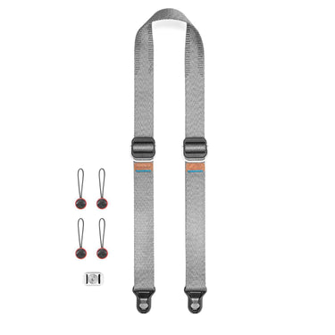 The most versatile pro camera strap in the world, Slide Lite packs the functionality of Peak Design's flagship Slide strap into a smaller package, perfectly suited for mirrorless and light DSLR cameras, yet fully capable of carrying larger cameras as well. Wear Slide Lite as a sling, neck, or shoulder strap. Seatbelt-style nylon webbing has a smooth side that glides over clothing in sling mode and a grippy side that prevents slipping in shoulder mode. Dual quick-adjusters provide instant access and easy reconfiguration. Unique Anchor Link system connects quickly and dual points of connection keep your camera more stable than traditional sling straps. Each Anchor holds over 200lbs (90kg), strong enough to keep the heaviest of pro rigs safe. As of 2018, Slide Lite features an improved silicone grip, upgraded webbing, and lower profile strap/hardware transitions. Anchor connectors have been updated to be smaller, faster, and more secure.