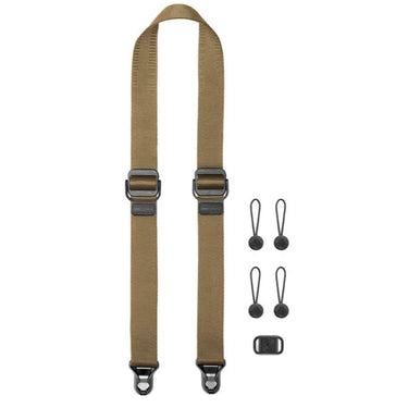 The most versatile pro camera strap in the world, Slide Lite packs the functionality of Peak Design's flagship Slide strap into a smaller package, perfectly suited for mirrorless and light DSLR cameras, yet fully capable of carrying larger cameras as well. Wear Slide Lite as a sling, neck, or shoulder strap. Seatbelt-style nylon webbing has a smooth side that glides over clothing in sling mode and a grippy side that prevents slipping in shoulder mode. Dual quick-adjusters provide instant access and easy reconfiguration. Unique Anchor Link system connects quickly and dual points of connection keep your camera more stable than traditional sling straps. Each Anchor holds over 200lbs (90kg), strong enough to keep the heaviest of pro rigs safe. As of 2018, Slide Lite features an improved silicone grip, upgraded webbing, and lower profile strap/hardware transitions. Anchor connectors have been updated to be smaller, faster, and more secure.