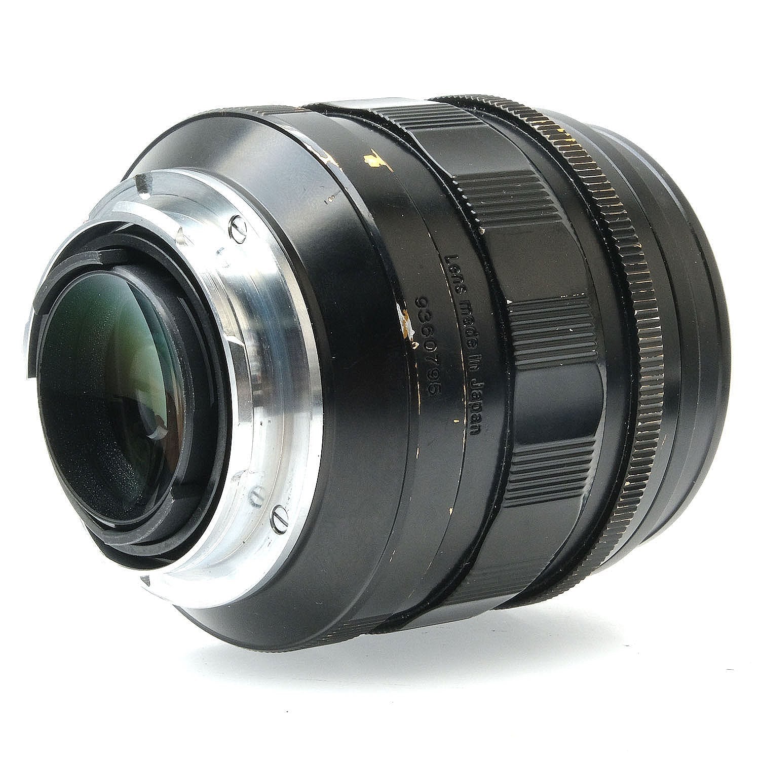 This Voigtlander 35mm f1.2 Nokton Asph Lens for Leica M (Black), #9360795, is in fair condition with heavy handling wear. I rate it cosmetically a (7+). The focus and aperture rings are smooth, the aperture functions properly, and the glass is clean and clear with no haze, marks, or fungus. There are a few faint specks of dust inside, but they do not affect image quality. This lens includes a Voigtlander lens hood and front & rear caps.